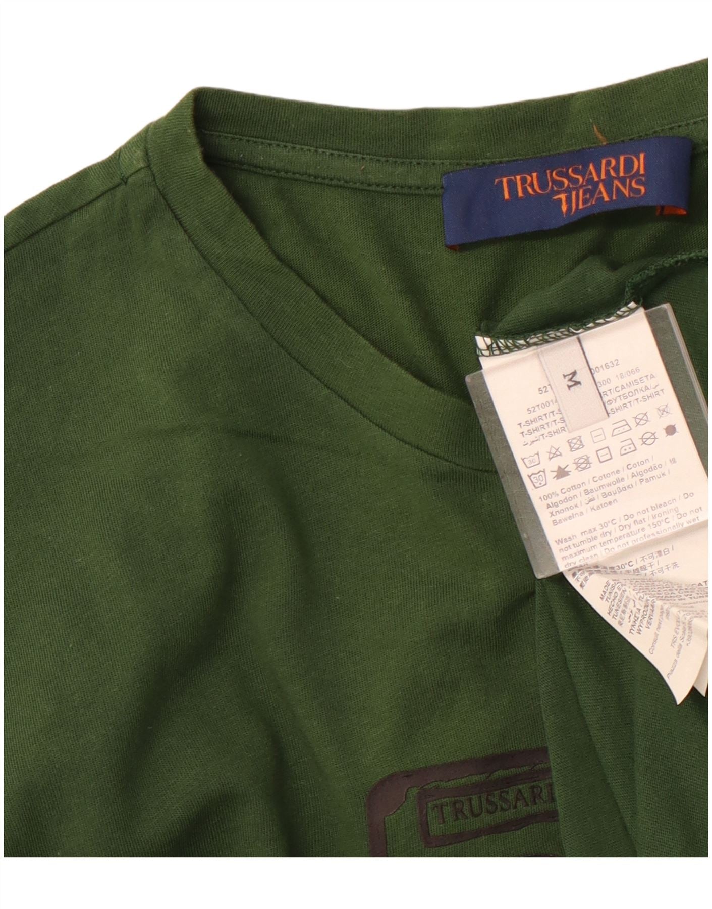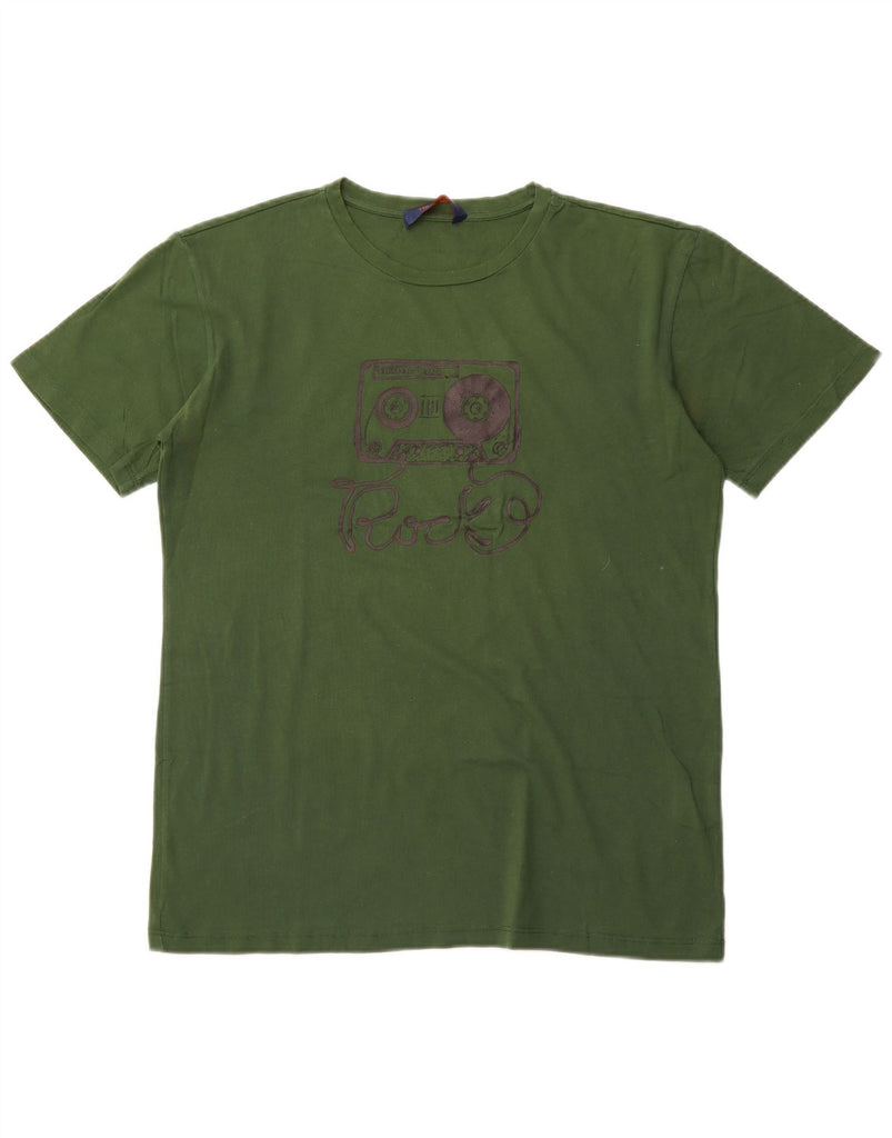 TRUSSARDI JEANS Mens Graphic T-Shirt Top Medium Green Cotton