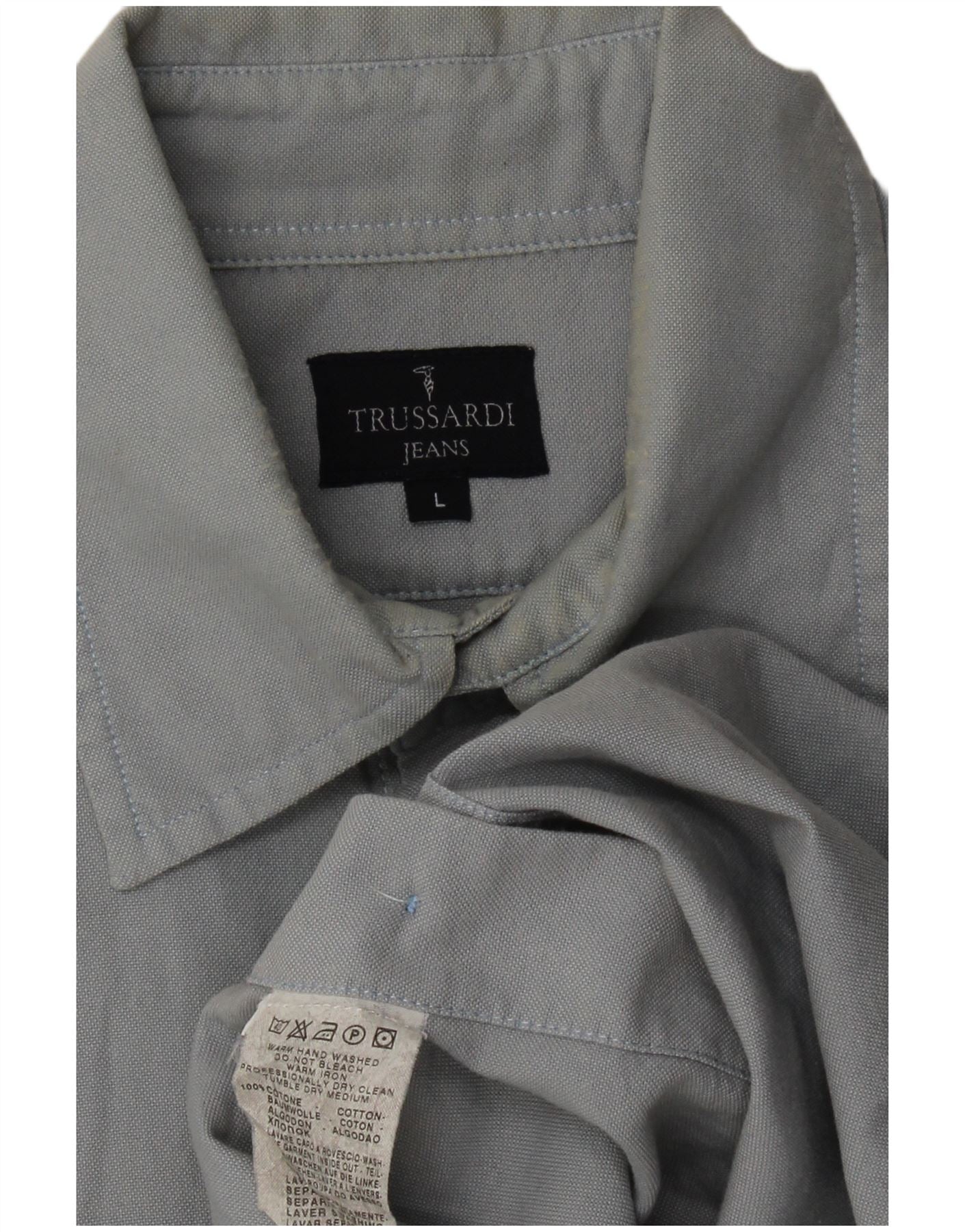 TRUSSARDI JEANS Mens Shirt Large Grey Cotton
