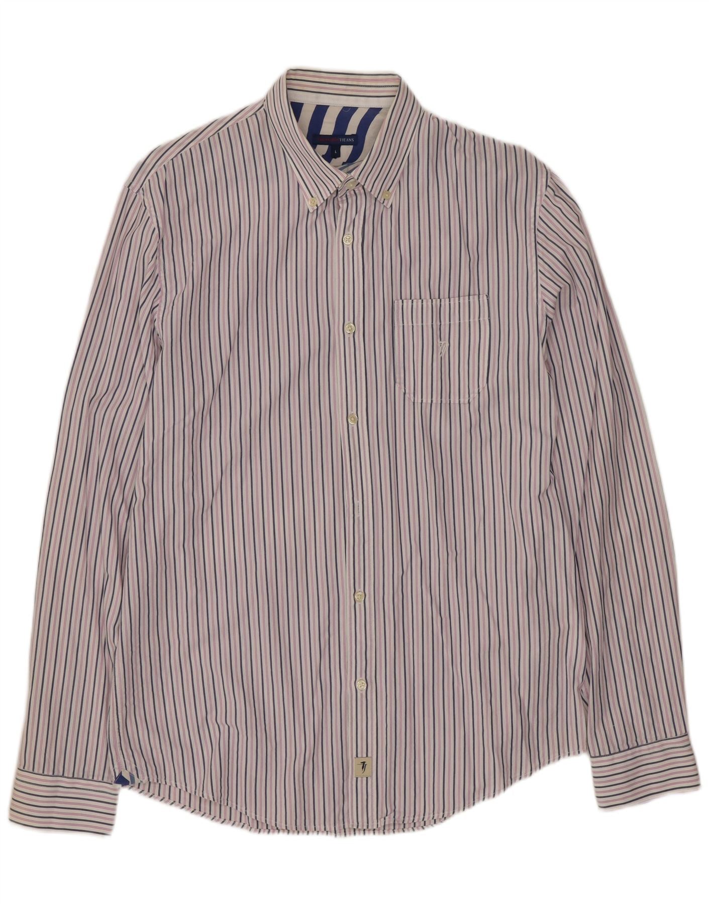 TRUSSARDI JEANS Mens Shirt Large White Pinstripe Cotton