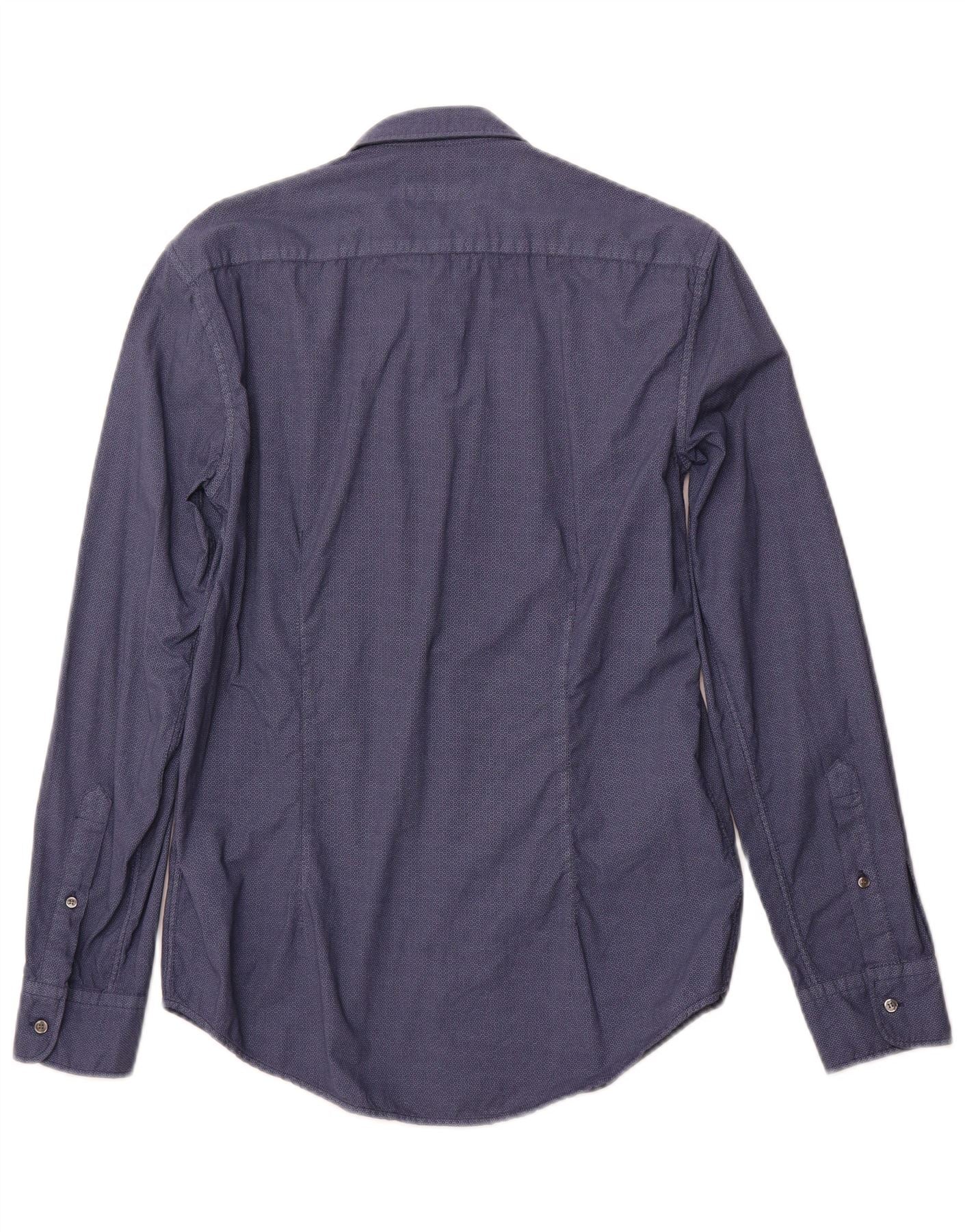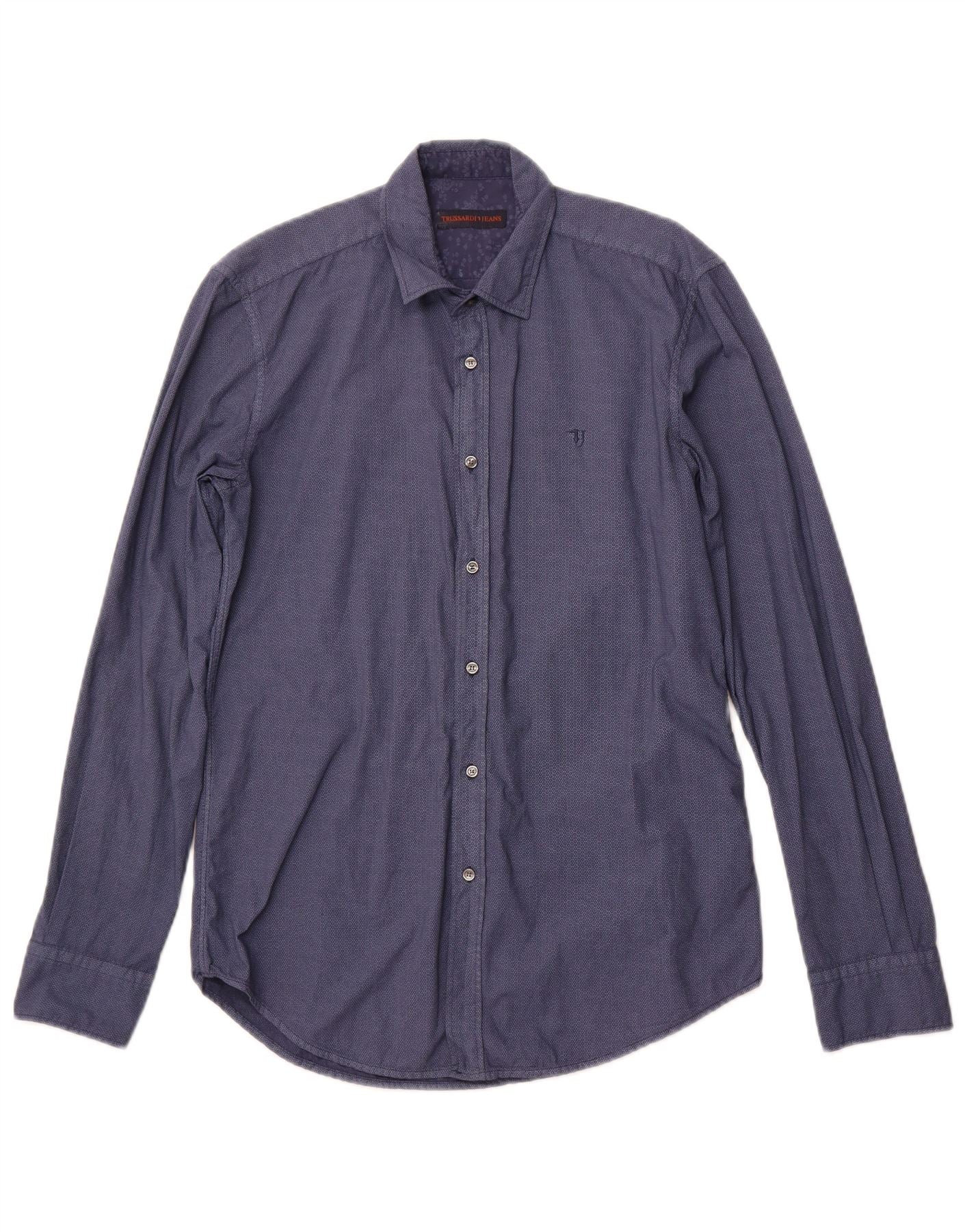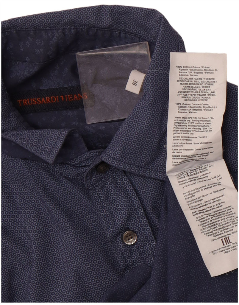 TRUSSARDI JEANS Mens Shirt Size 38 Medium Navy Blue Geometric Cotton