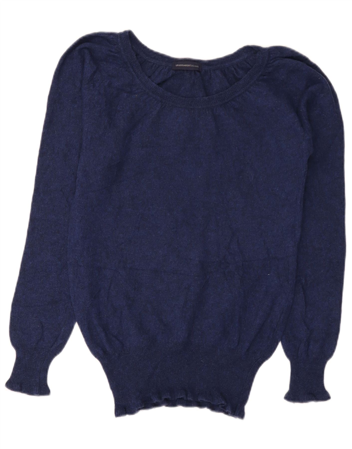 TRUSSARDI JEANS Womens Boat Neck Jumper Sweater UK 12 Medium Navy Blue