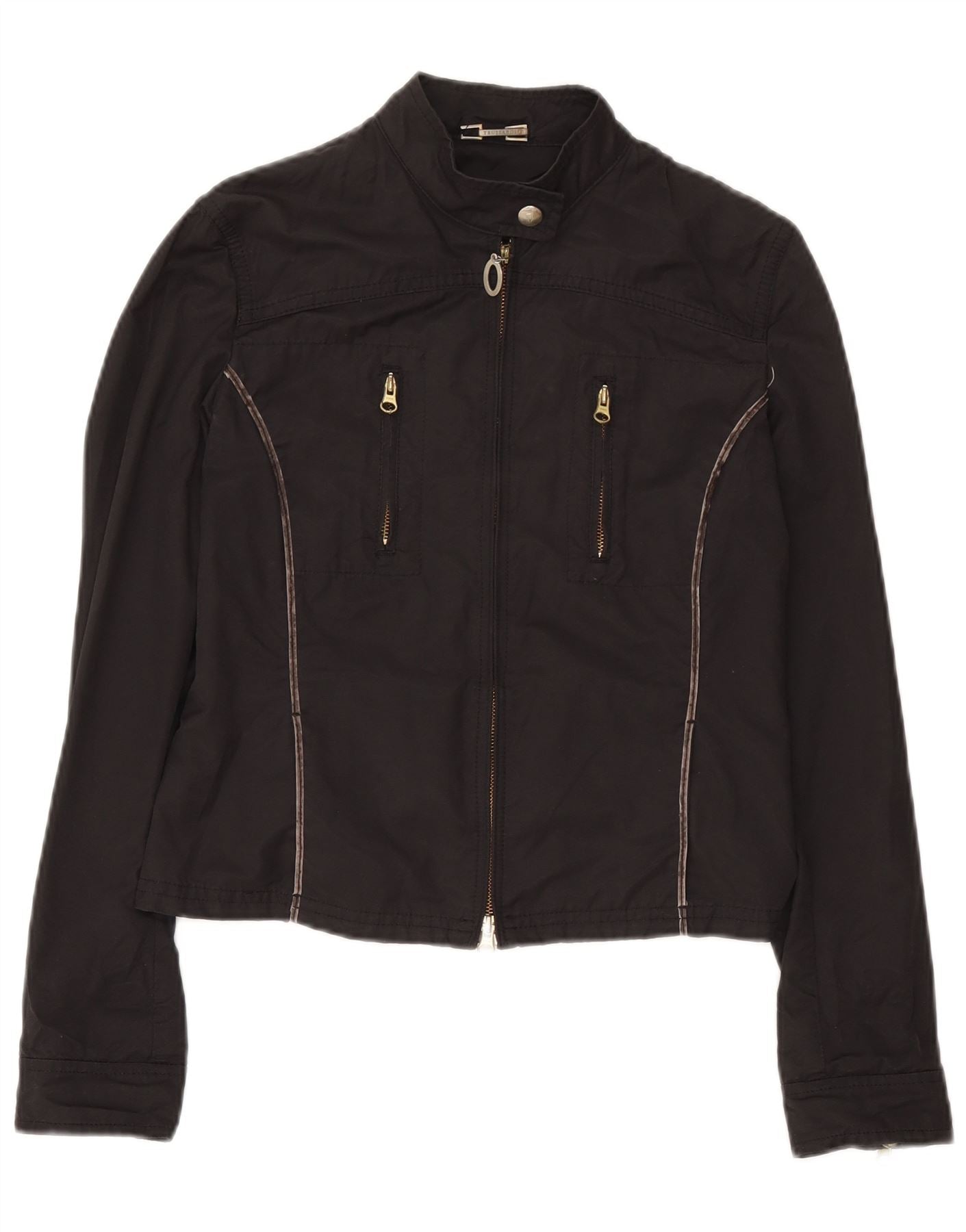 Trussardi Jeans Womens Crop Bomber Jacket IT 46 Large Black Cotton