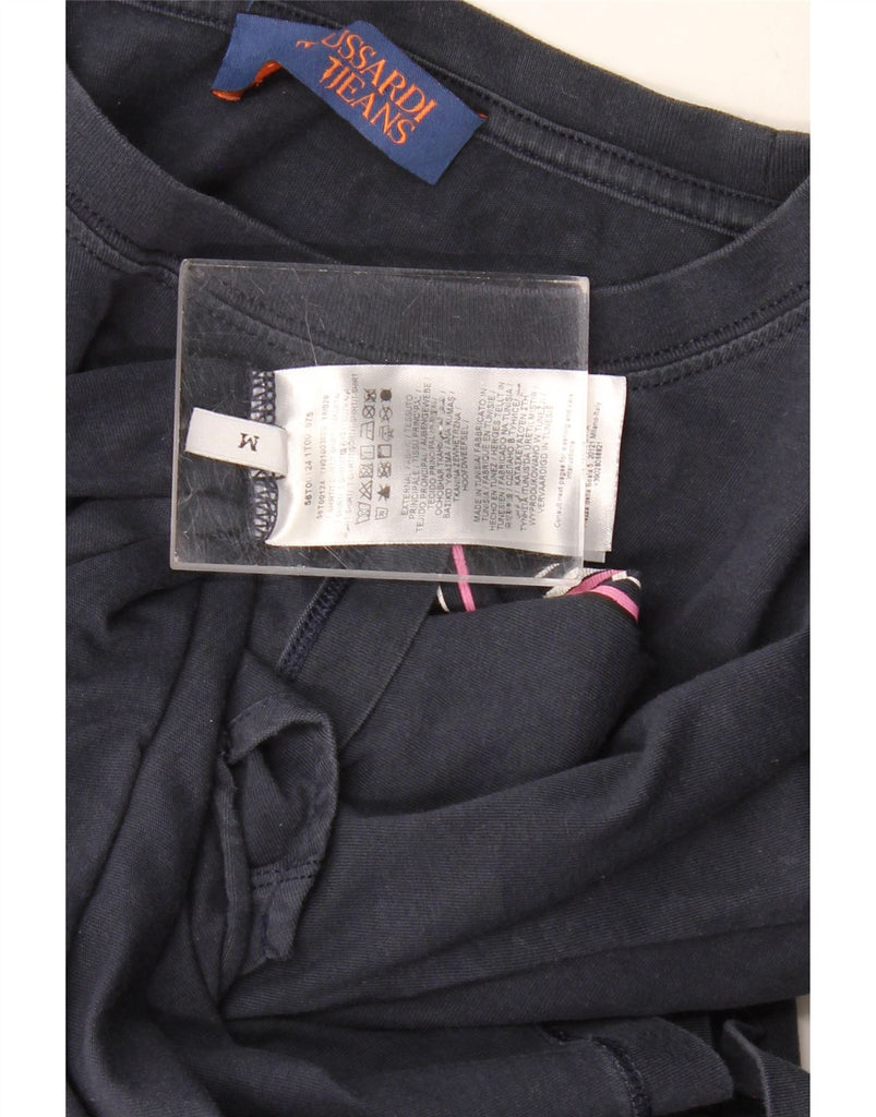 TRUSSARDI JEANS Womens Graphic T-Shirt Top UK 14 Medium Navy Blue Cotton