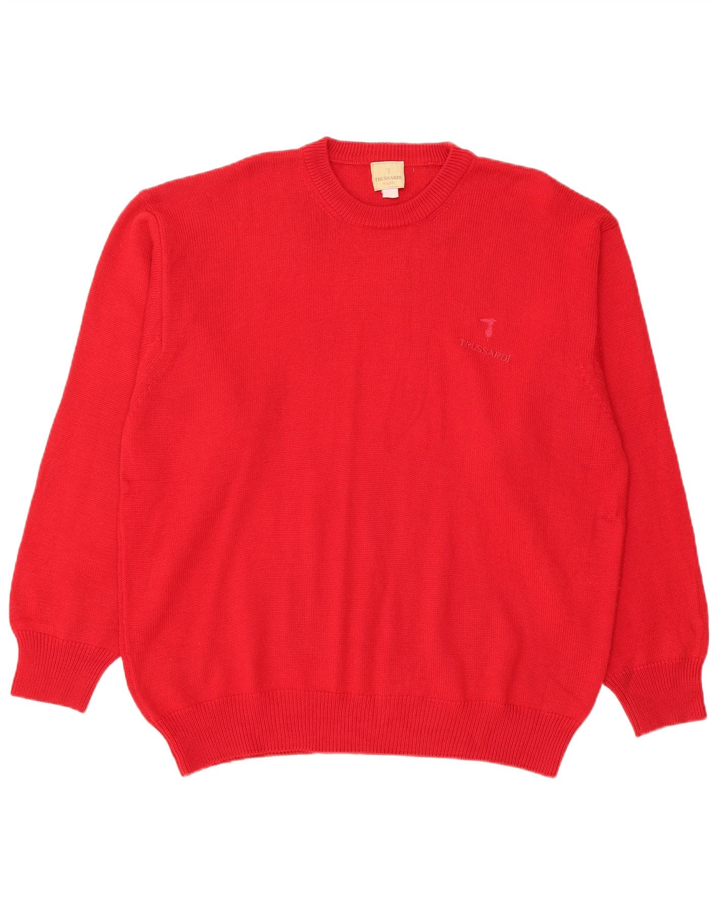 TRUSSARDI Mens Crew Neck Jumper Sweater XL Red Merino Wool