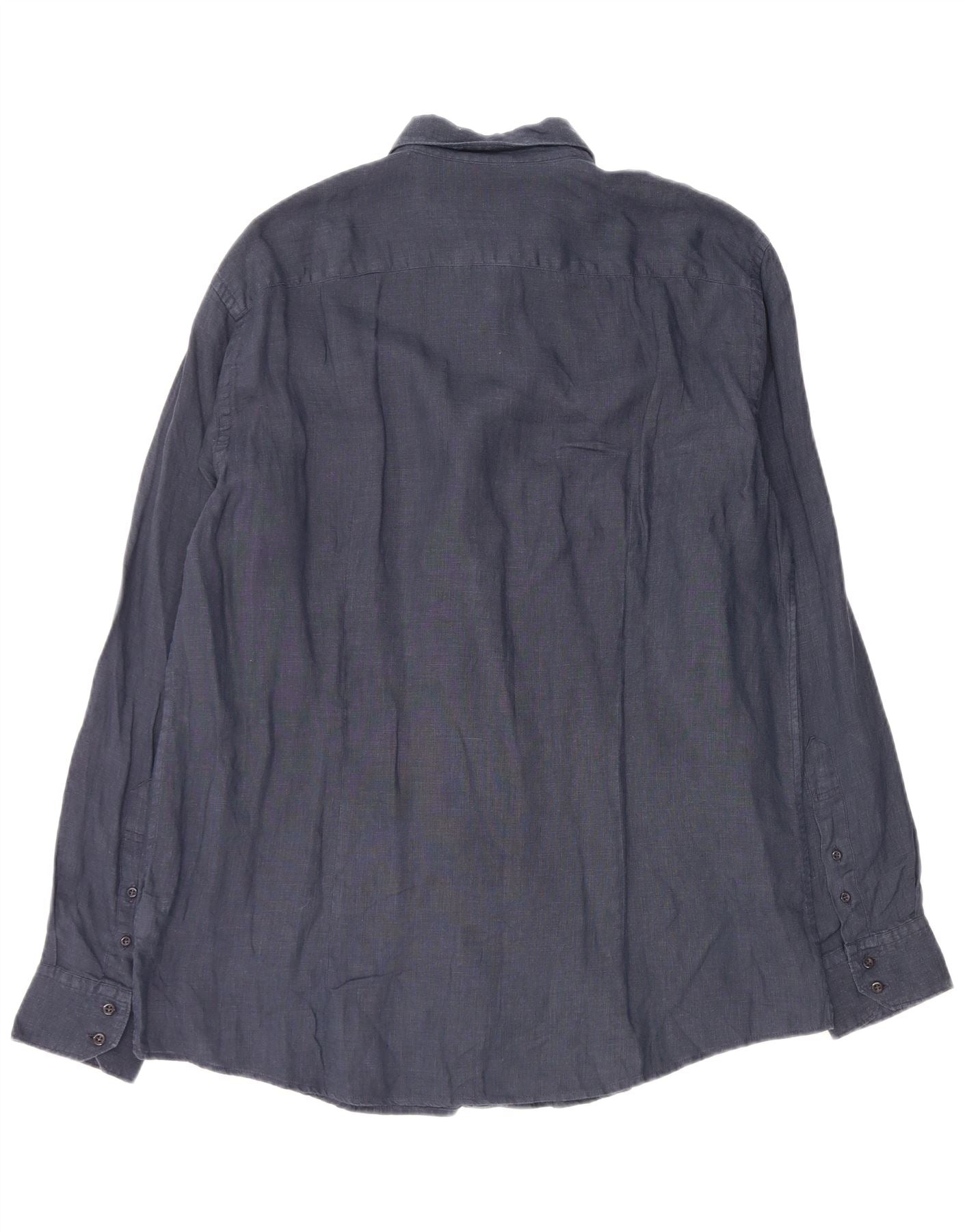TRUSSARDI Mens Shirt Size 43 Large Navy Blue Linen
