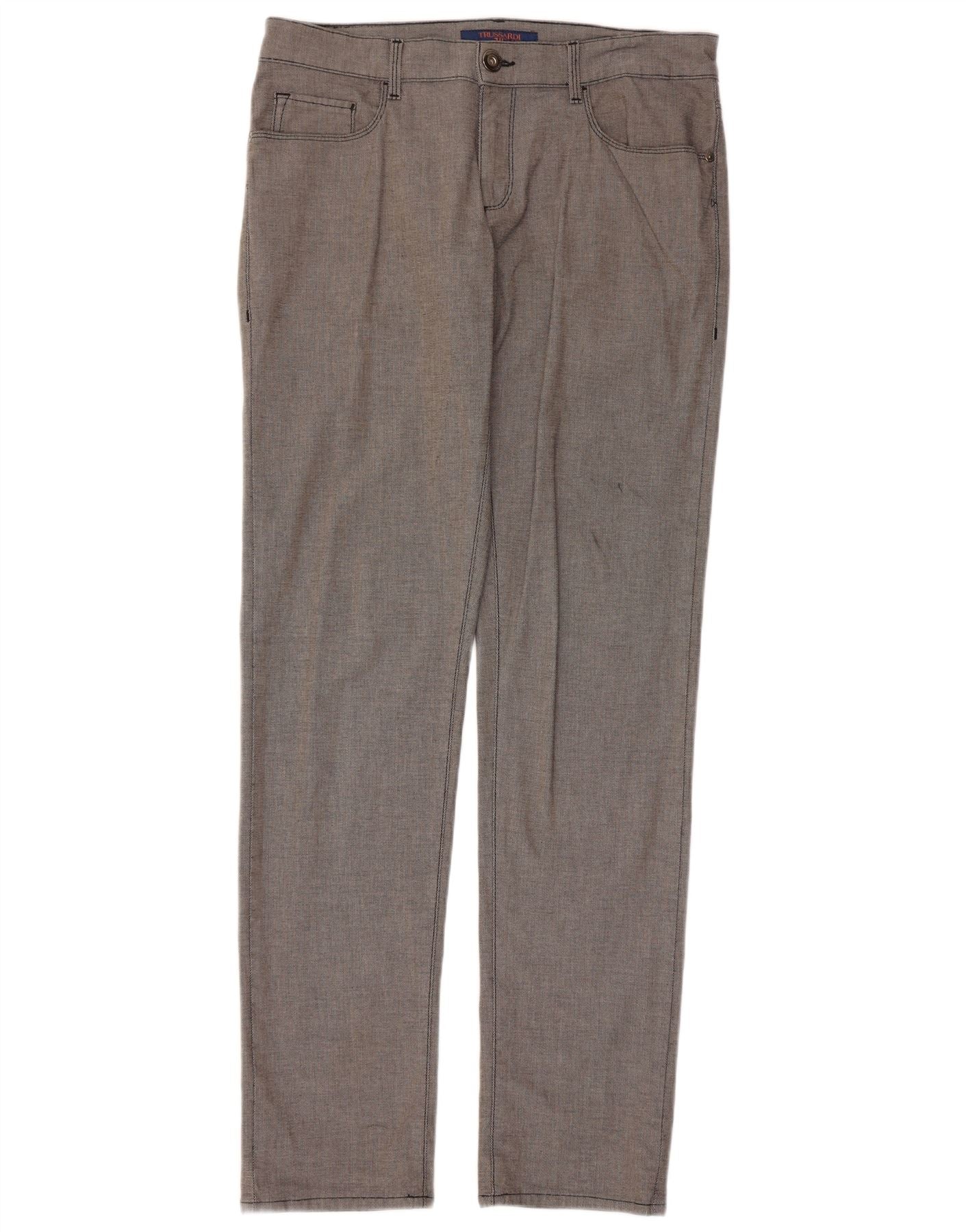 Trussardi Mens Slim Casual Trousers W34 L33 Grey Cotton