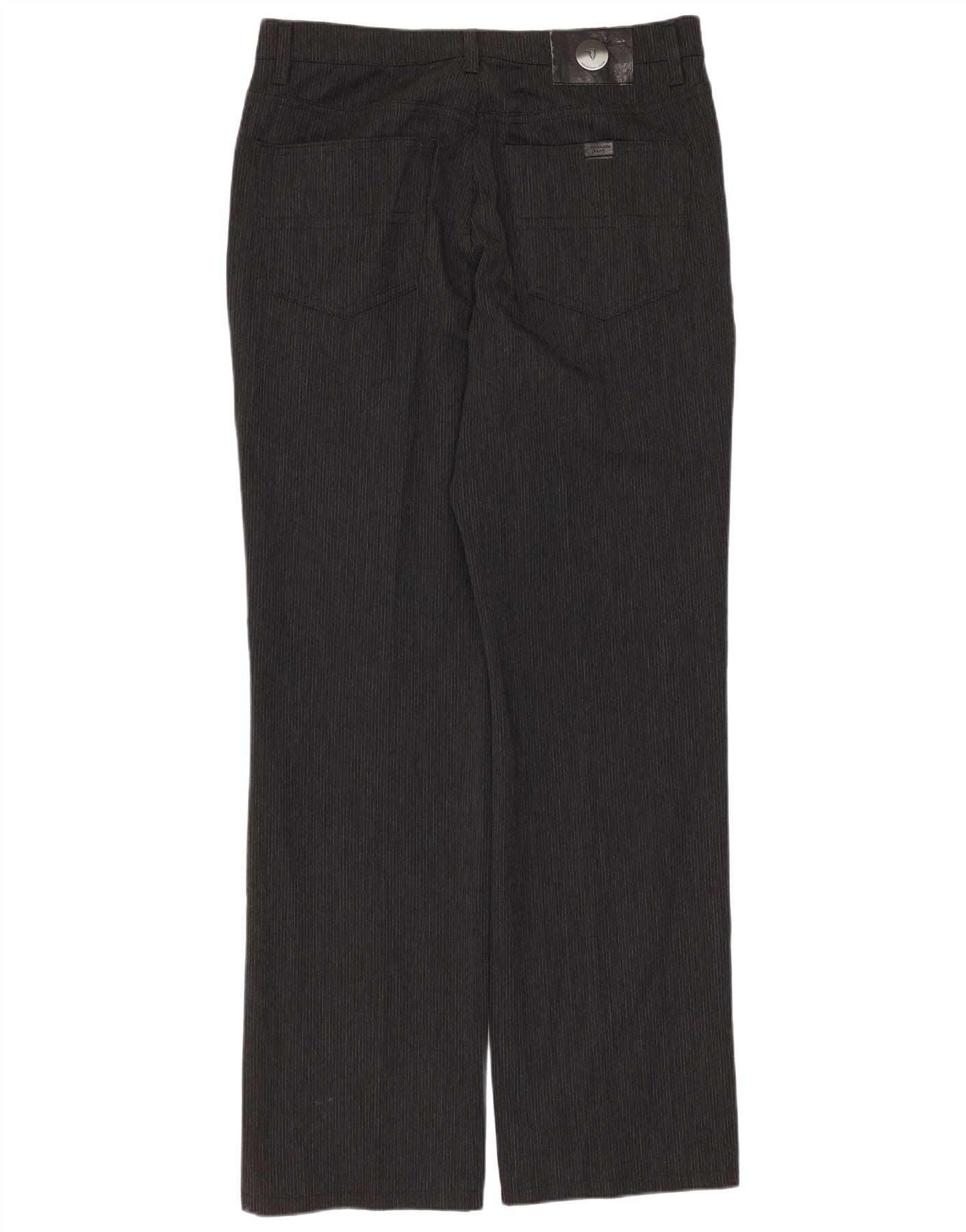 TRUSSARDI Mens Straight Casual Trousers W33 L31 Grey Pinstripe Polyester