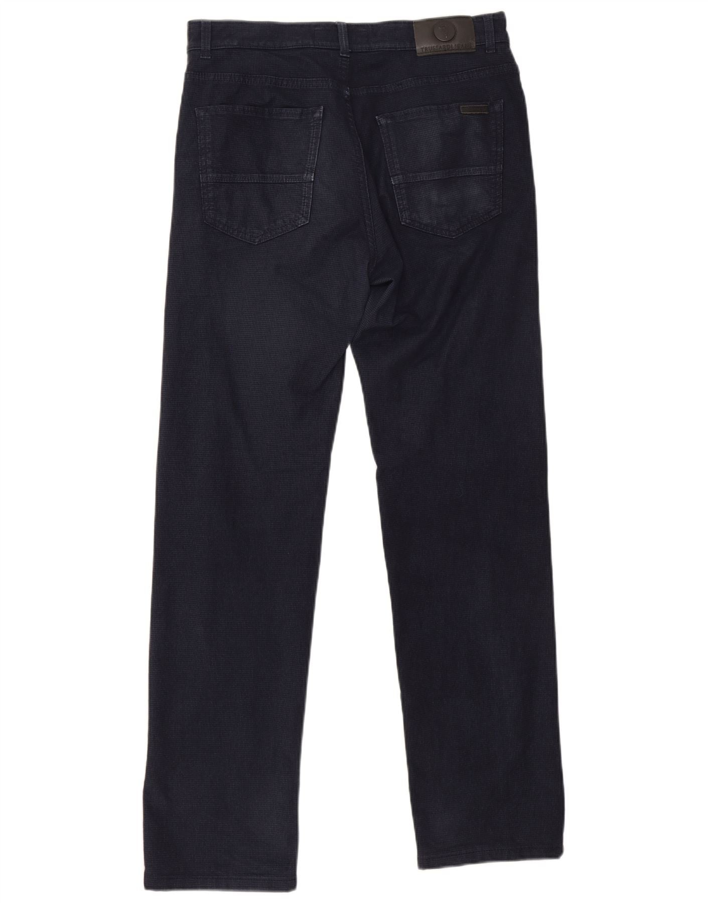 Trussardi Mens Straight Casual Trousers W34 L31 Navy Blue Houndstooth