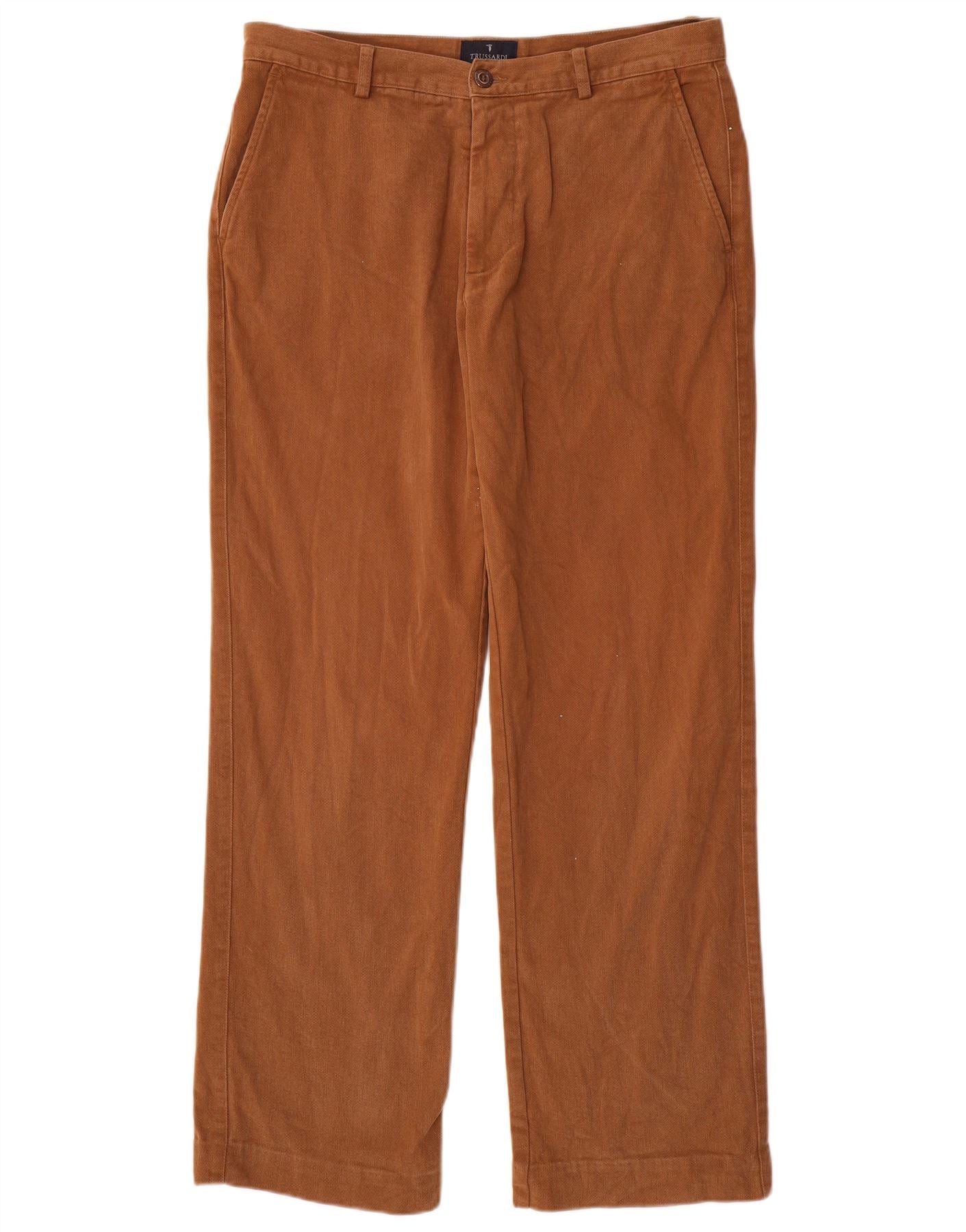 TRUSSARDI Mens Straight Chino Trousers IT 52 XL W34 L31 Brown Cotton