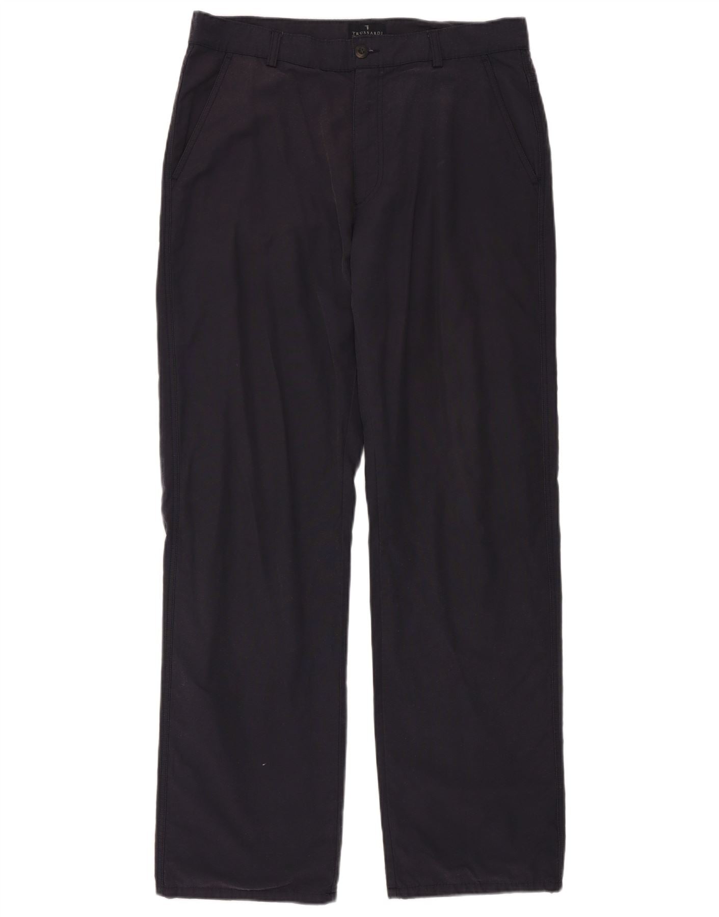 TRUSSARDI Mens Straight Chino Trousers IT 52 XL W36 L34 Navy Blue Cotton