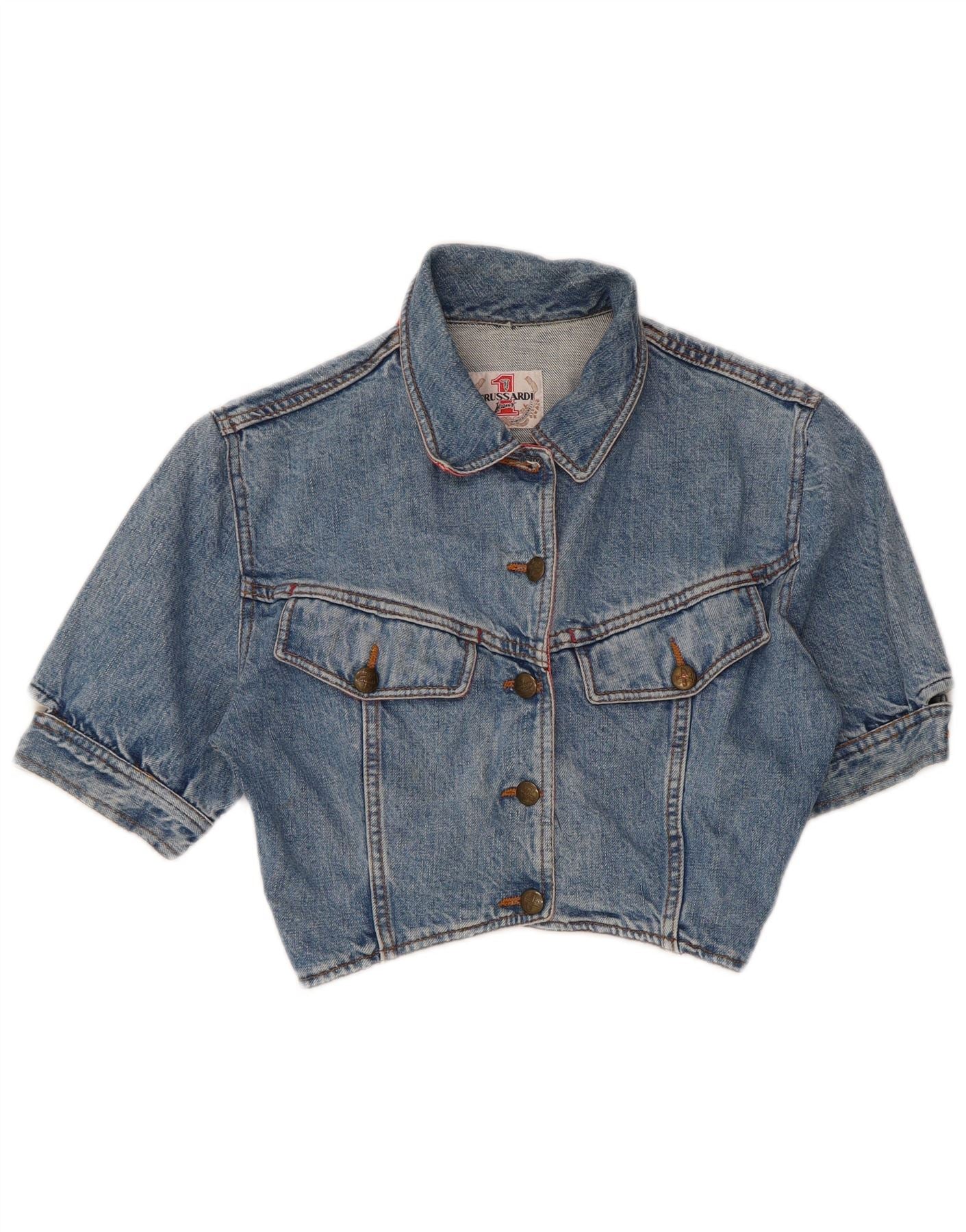 TRUSSARDI Womens Short Sleeve Denim Bolero Jacket IT 42 Medium Blue Cotton