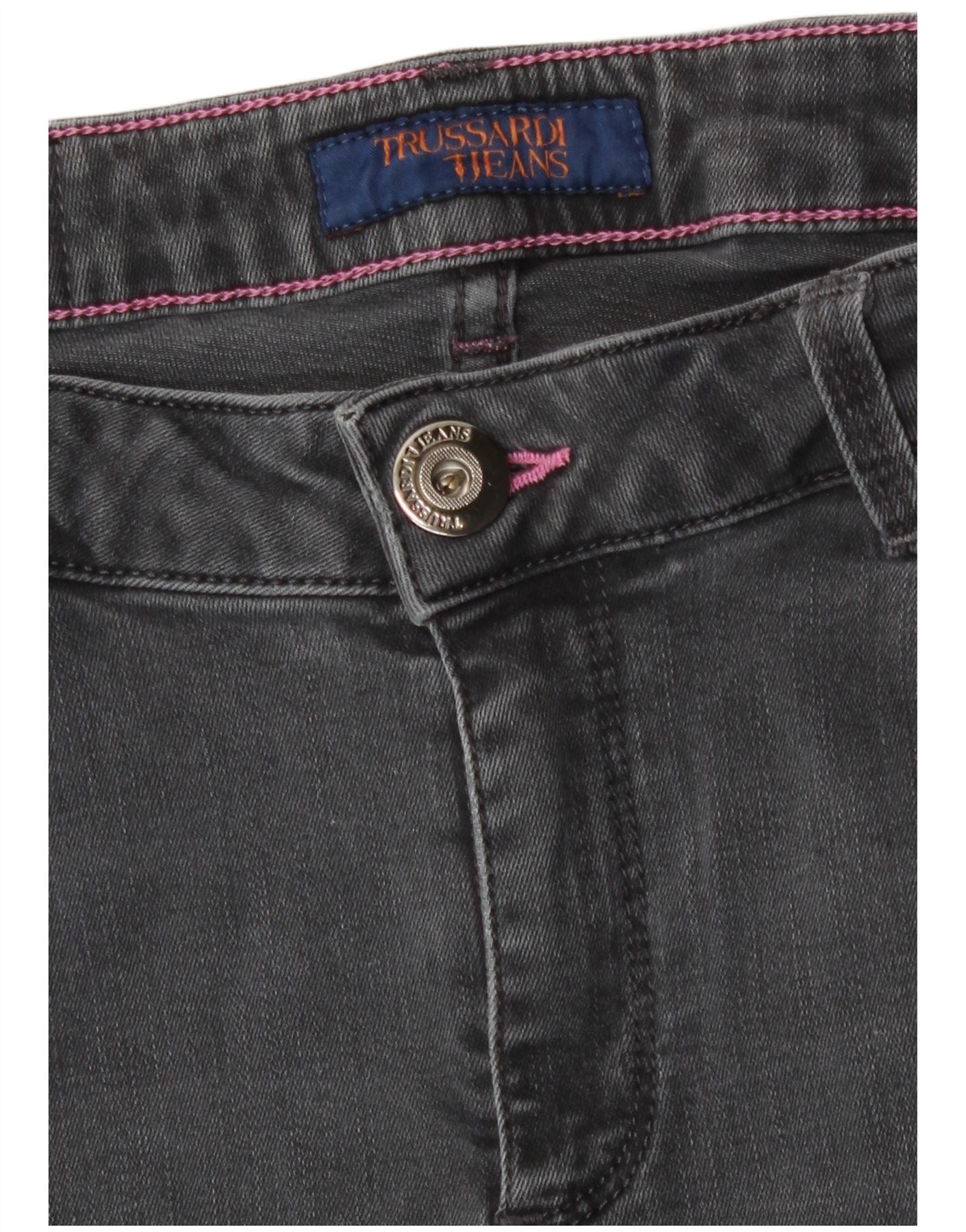 - AI Description: These Trussardi Jeans women's skinny jeans are crafted from grey denim with a comfortable stretch. They feature a slim fit and a practical zip closure. The design includes classic pockets. Subtle distressed detailing adds a contemporary edge. A discreet logo accent completes the look. These jeans offer a modern yet classic style for everyday wear.