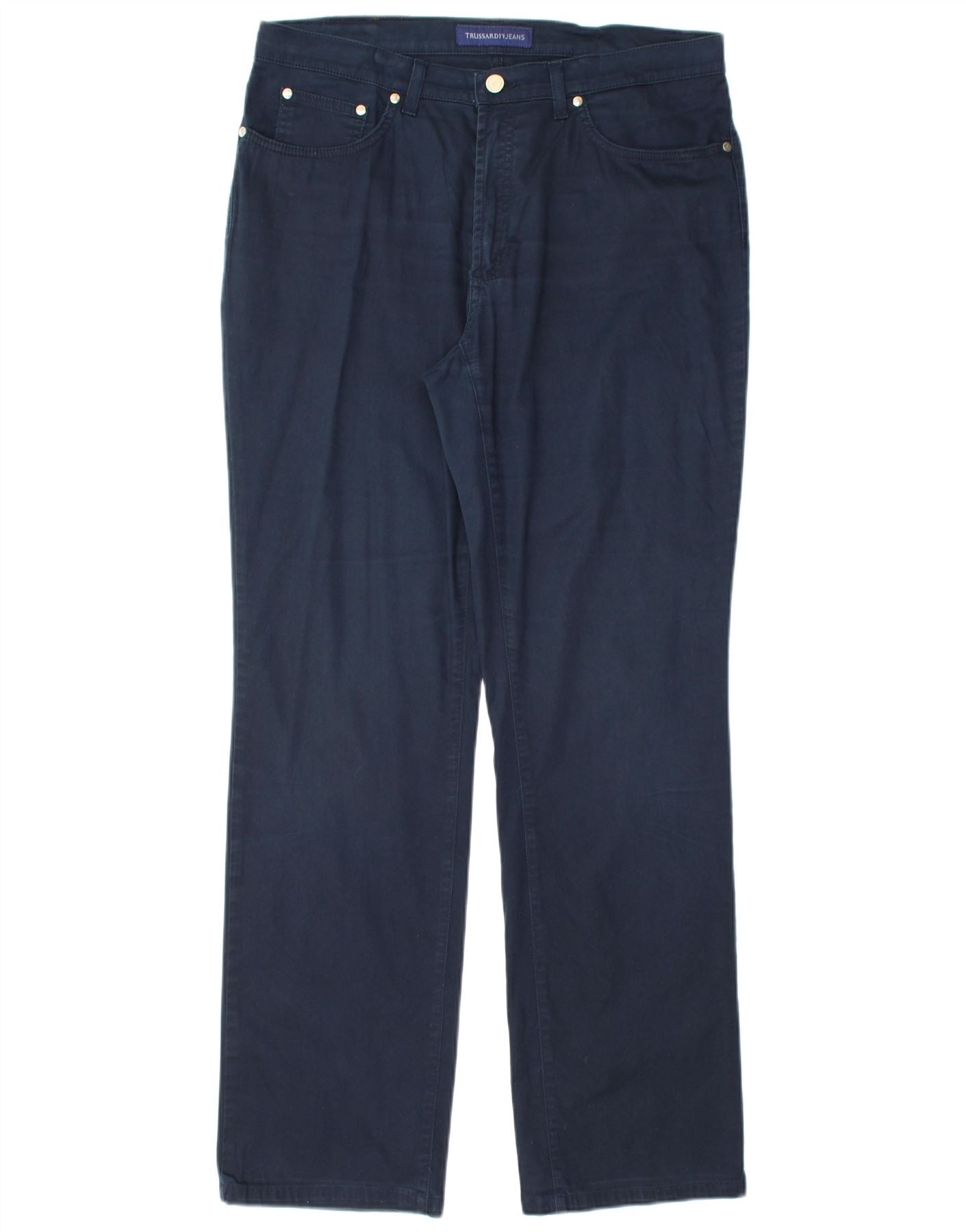 TRUSSARDI Womens Straight Casual Trousers W36 L32 Navy Blue Cotton