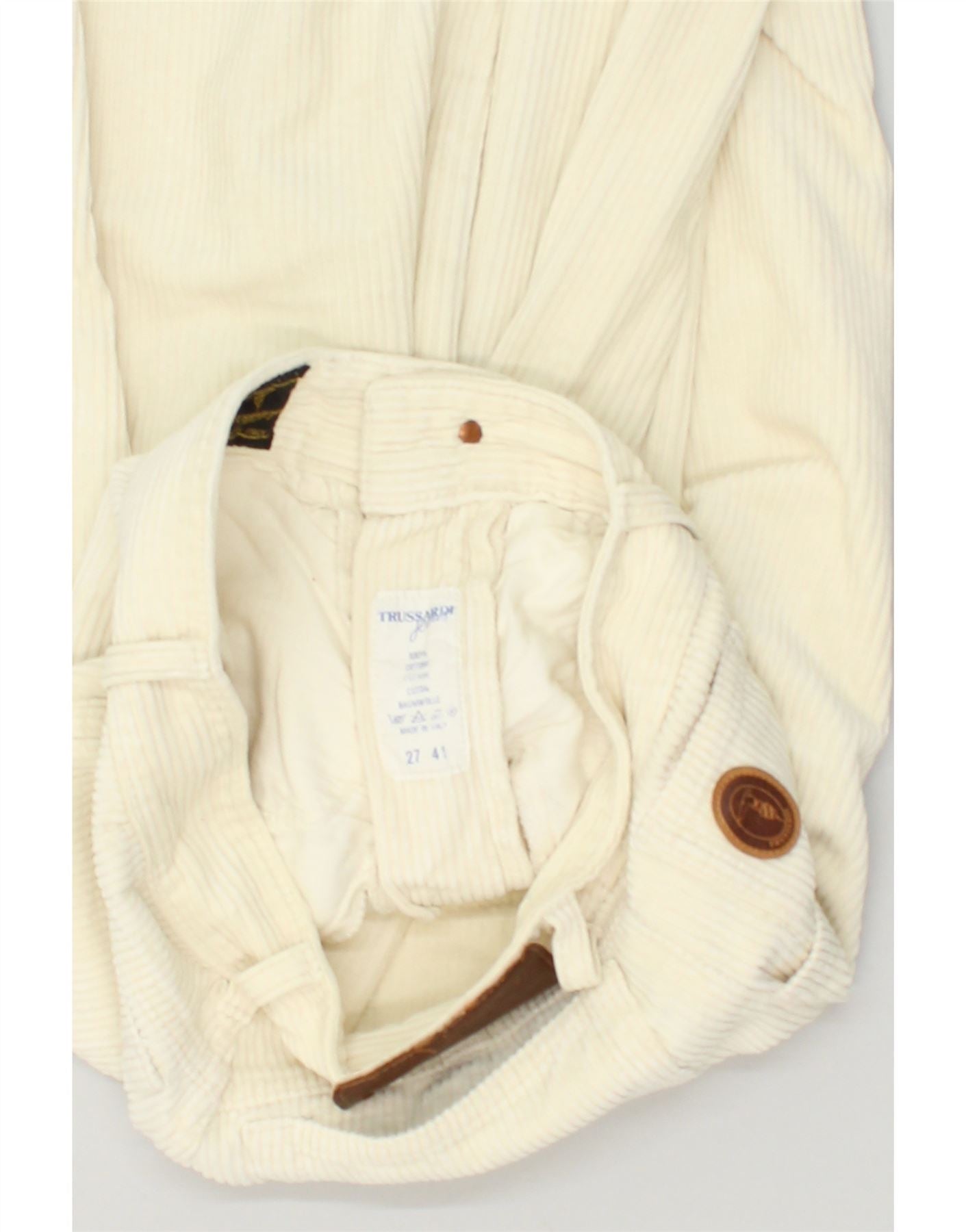 TRUSSARDI Womens Tapered Corduroy Trousers W27 L27 White Cotton