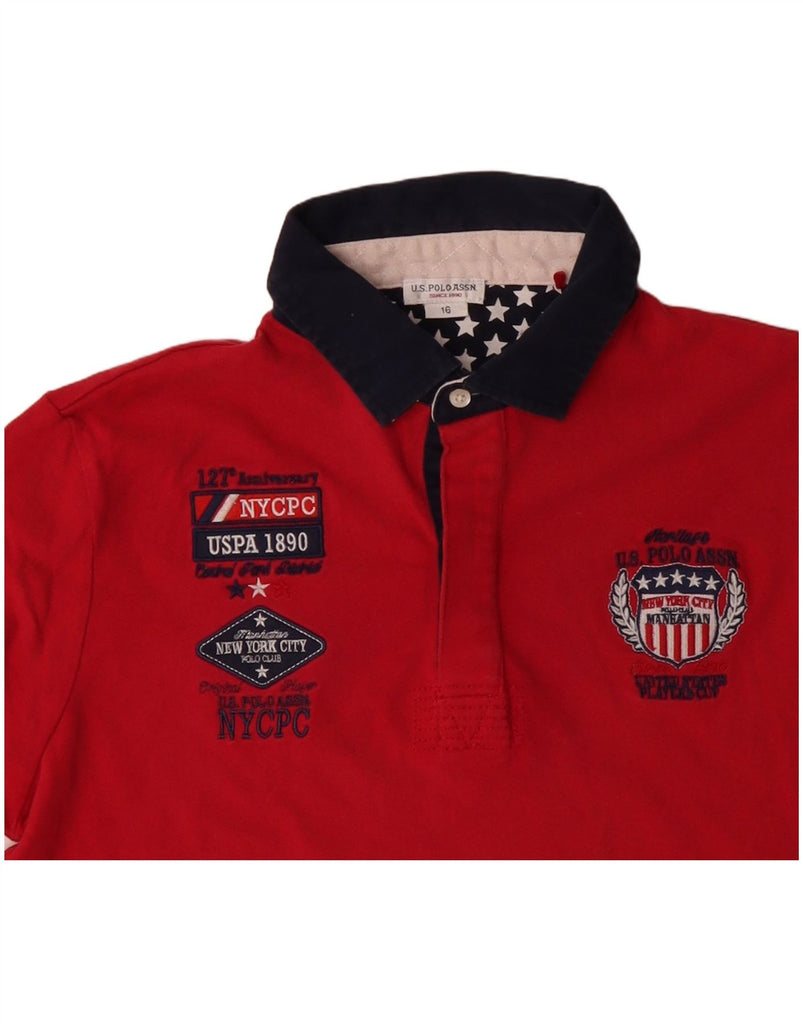 U.S. POLO ASSN. Boys Graphic Long Sleeve Rugby Polo Shirt 15-16 Years Red