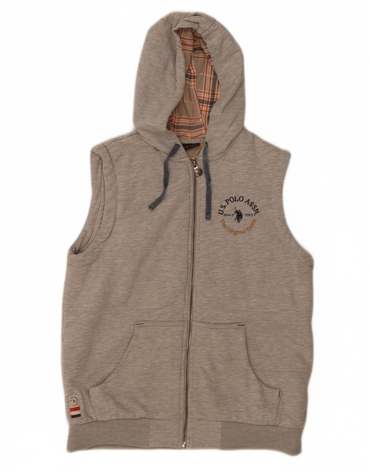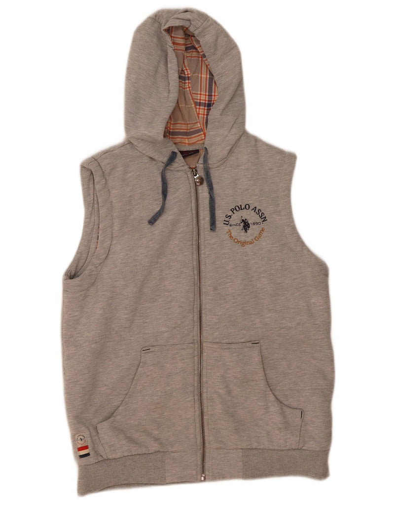 U.S. POLO ASSN. Mens Graphic Sleeveless Zip Hoodie Sweater XS Grey Flecked