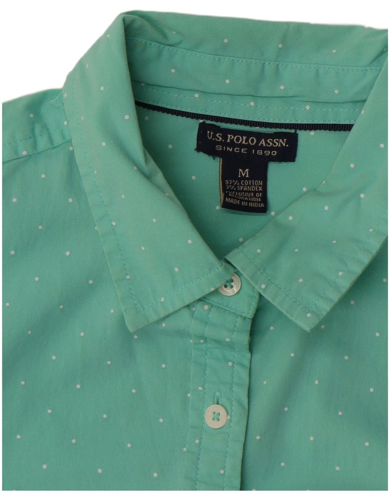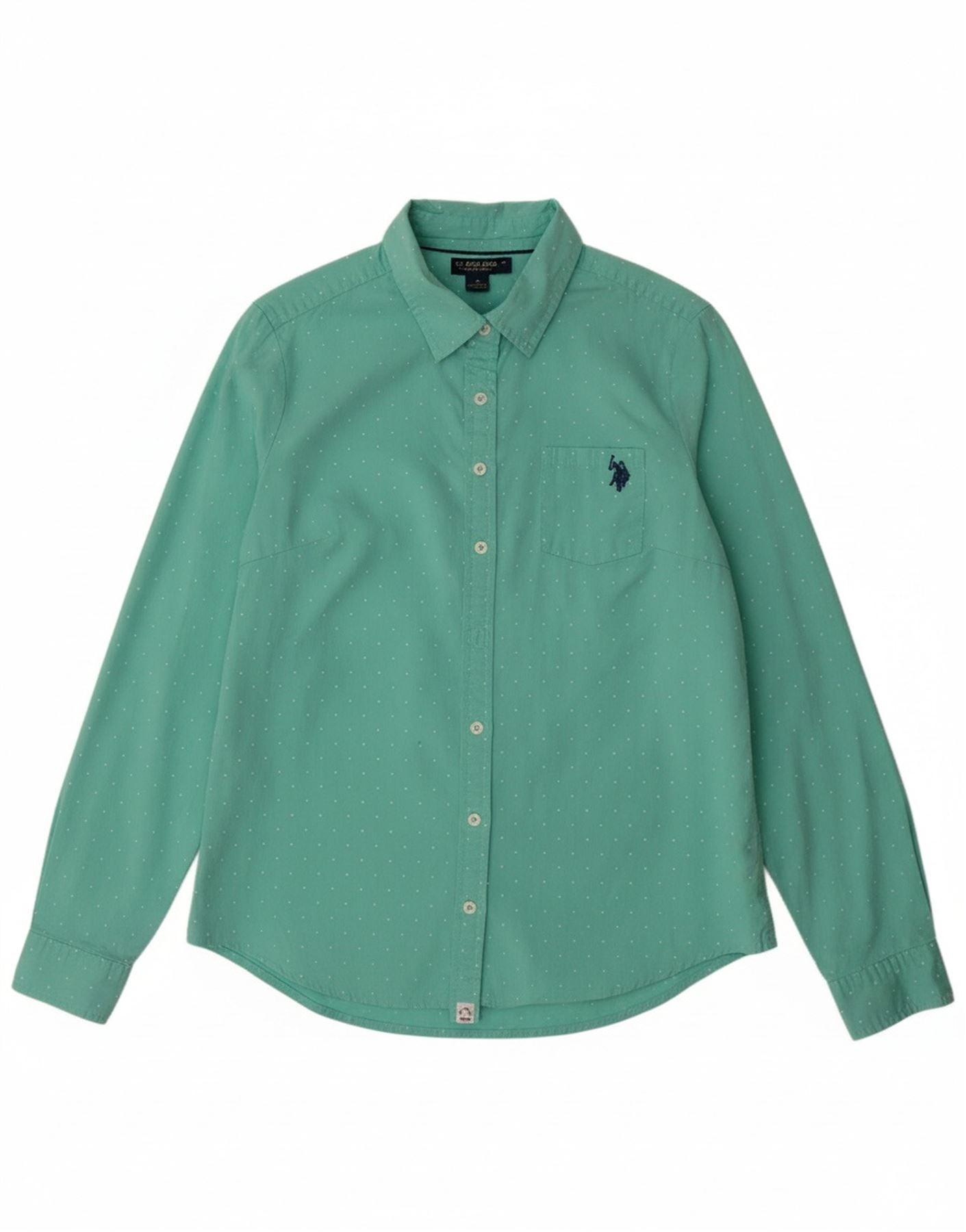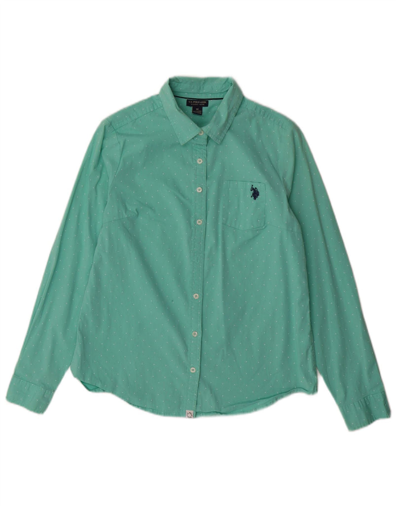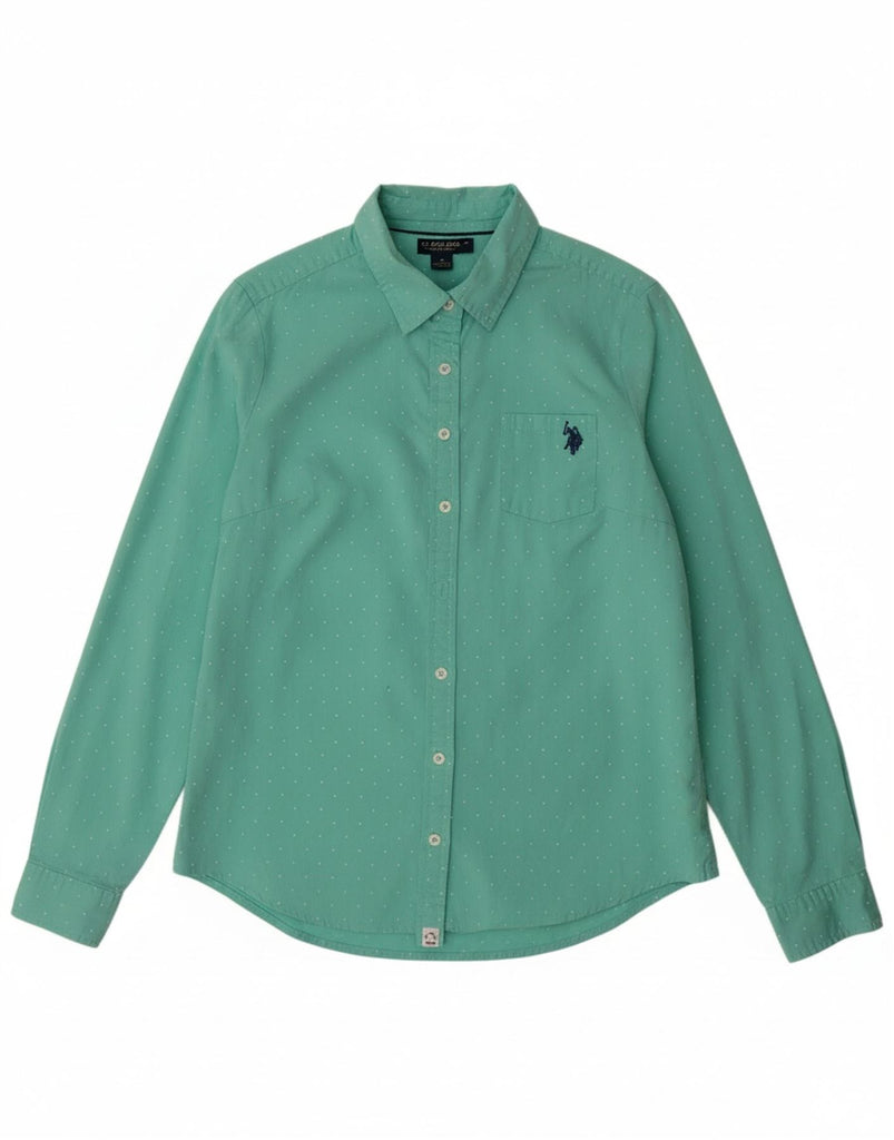 U.S. POLO ASSN. Womens Shirt UK 12 Medium Green Spotted Cotton