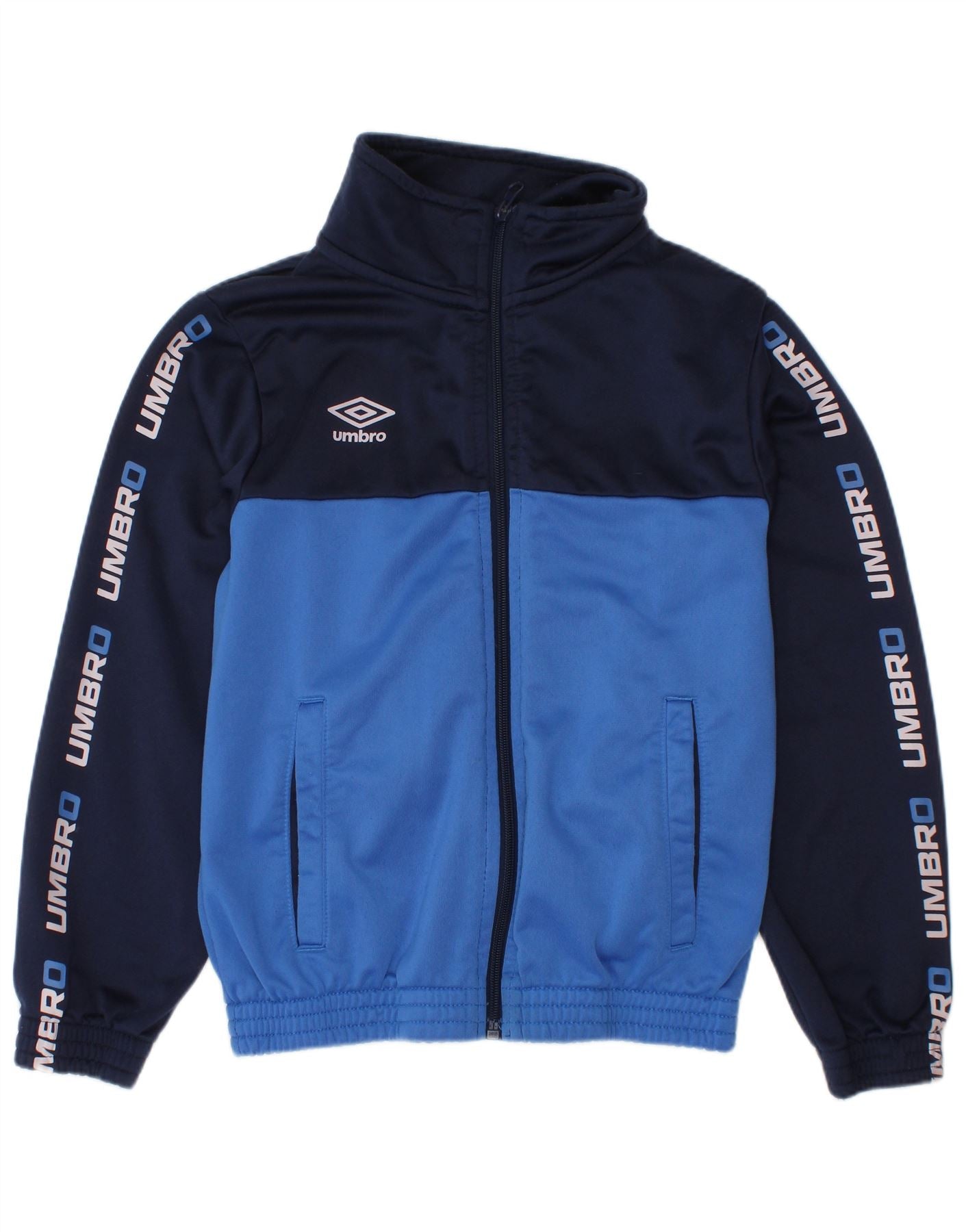 UMBRO Boys Graphic Tracksuit Top Jacket 7-8 Years Navy Blue Colourblock