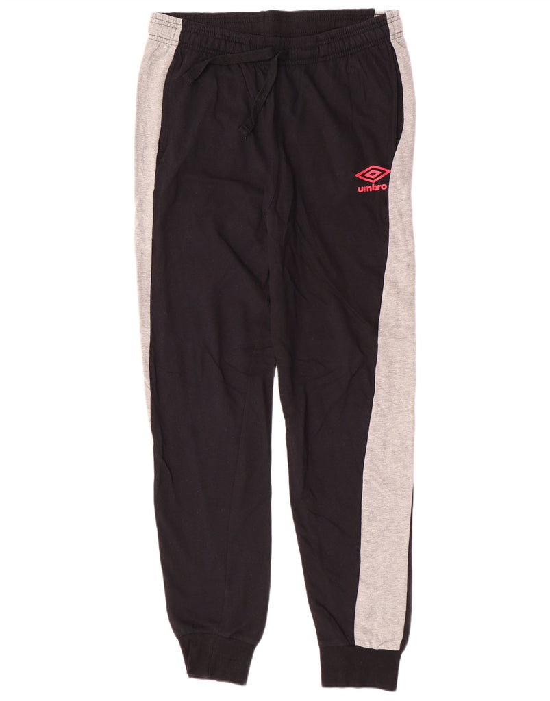 UMBRO Mens Tracksuit Trousers Joggers Medium Black Colourblock Cotton