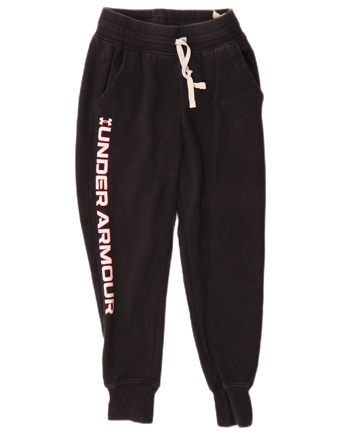 UNDER ARMOUR Boys Graphic Tracksuit Trousers Joggers 8-9 Years Small Black