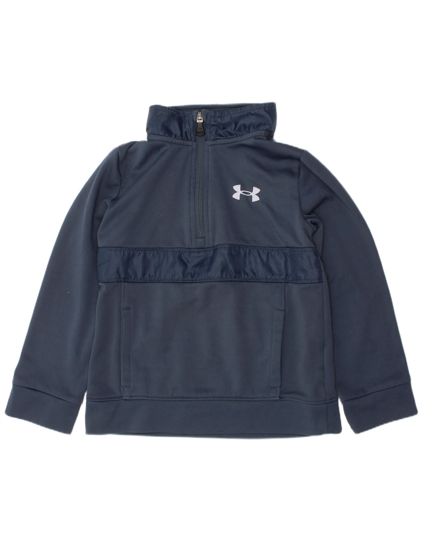 UNDER ARMOUR Boys Zip Neck Sweatshirt Jumper 5-6 Years Navy Blue Polyester