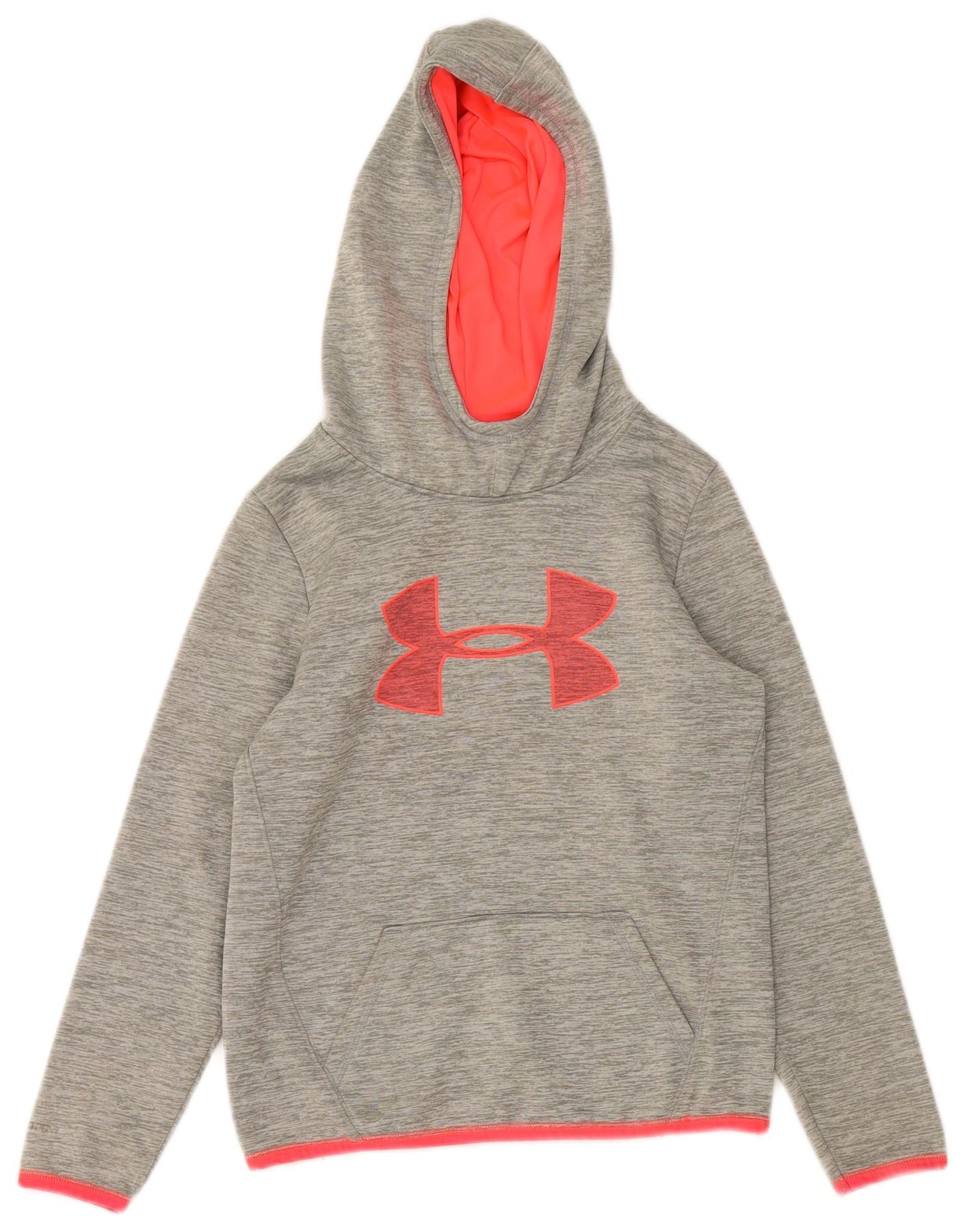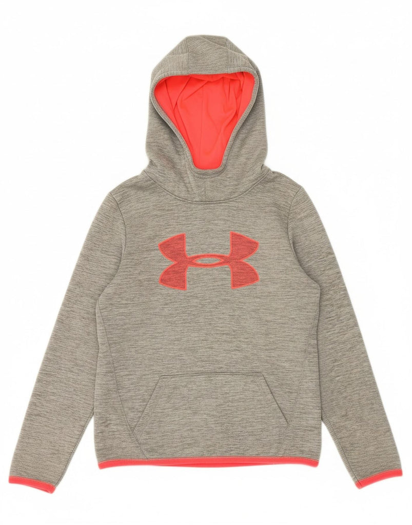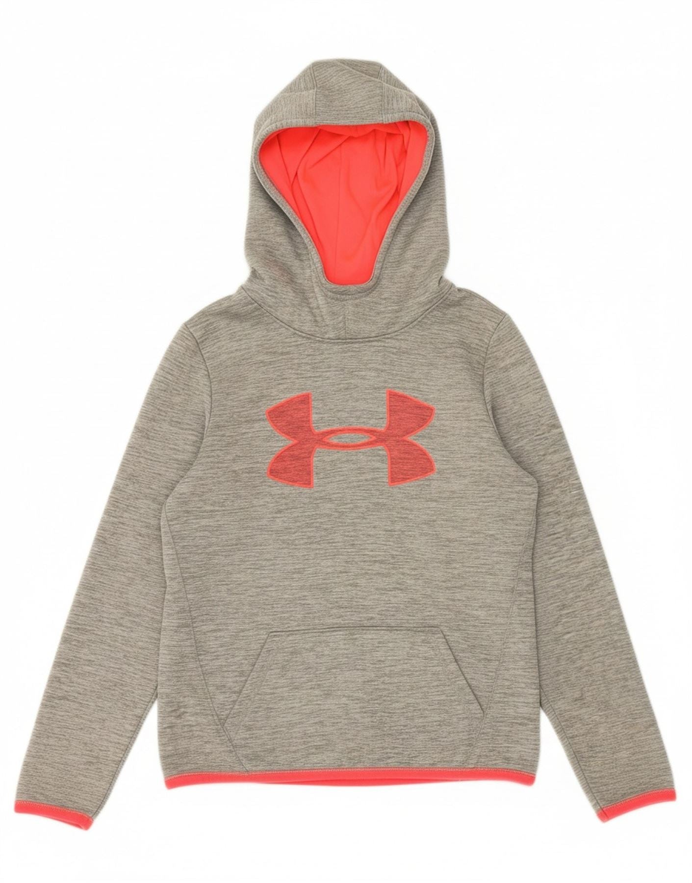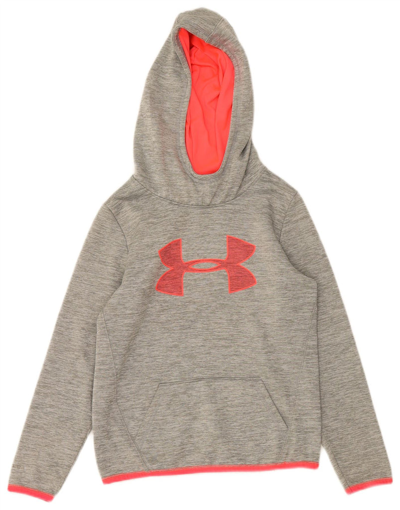 UNDER ARMOUR Girls Cold Gear Graphic Hoodie Jumper 9-10 Years Medium Grey