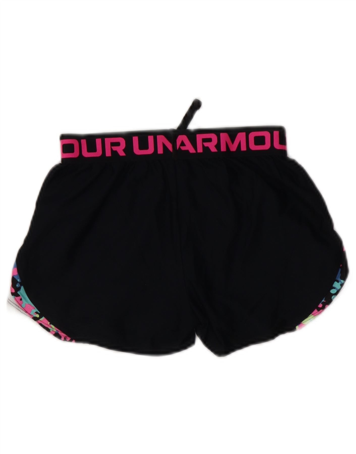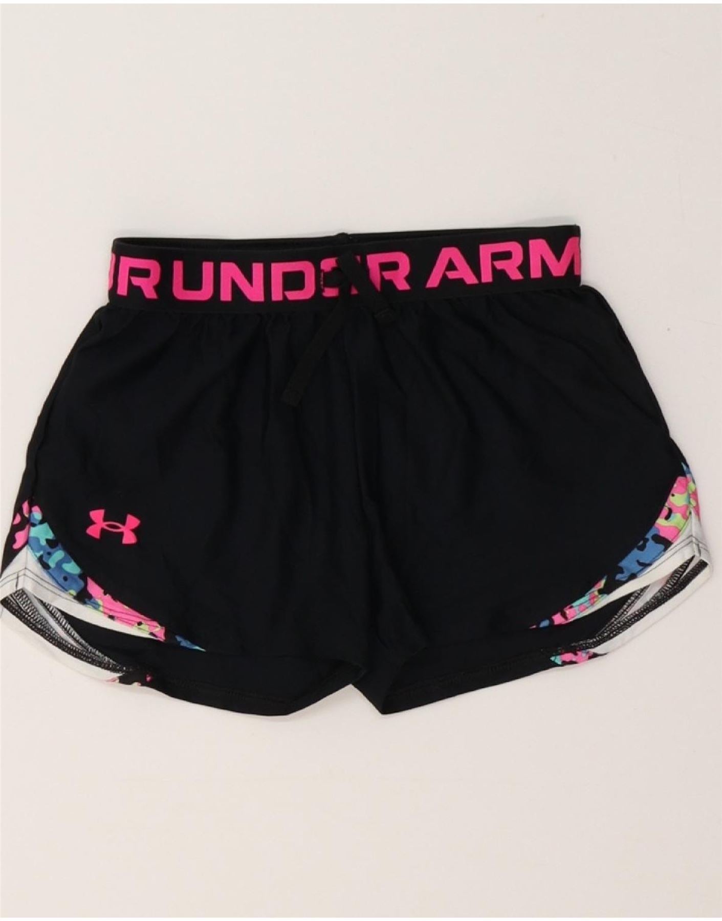 UNDER ARMOUR Girls Heat Gear Graphic Sport Shorts 9-10 Years Medium Black