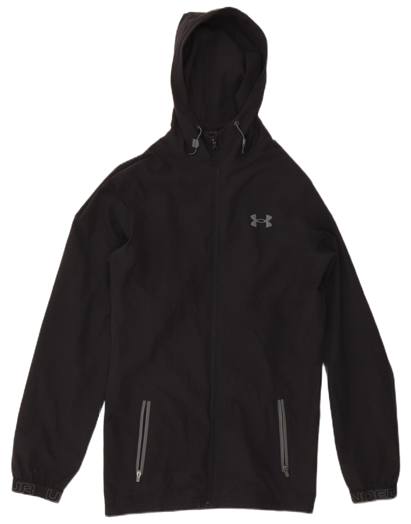 UNDER ARMOUR Mens Graphic Hooded Windbreaker Jacket UK 36 Small Black