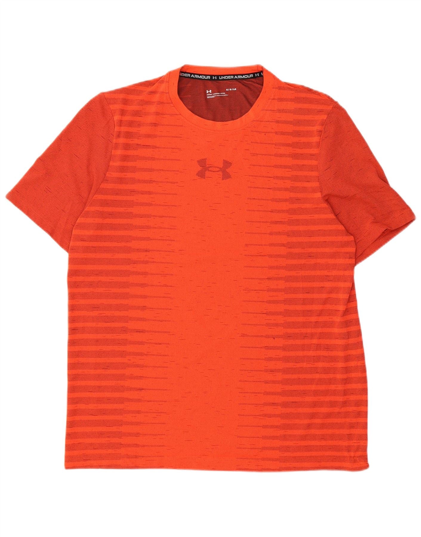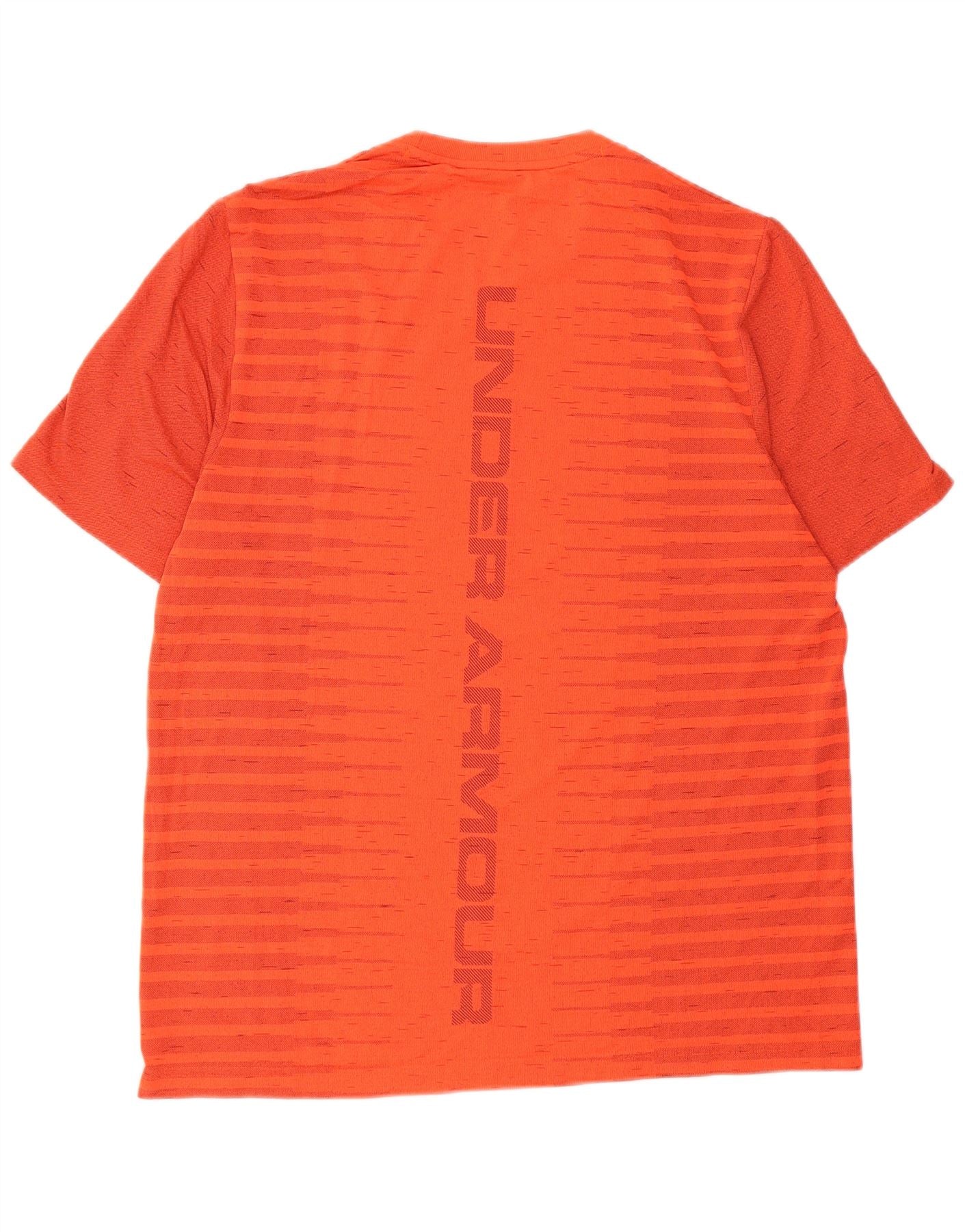 UNDER ARMOUR Mens Graphic T-Shirt Top Large Orange Striped