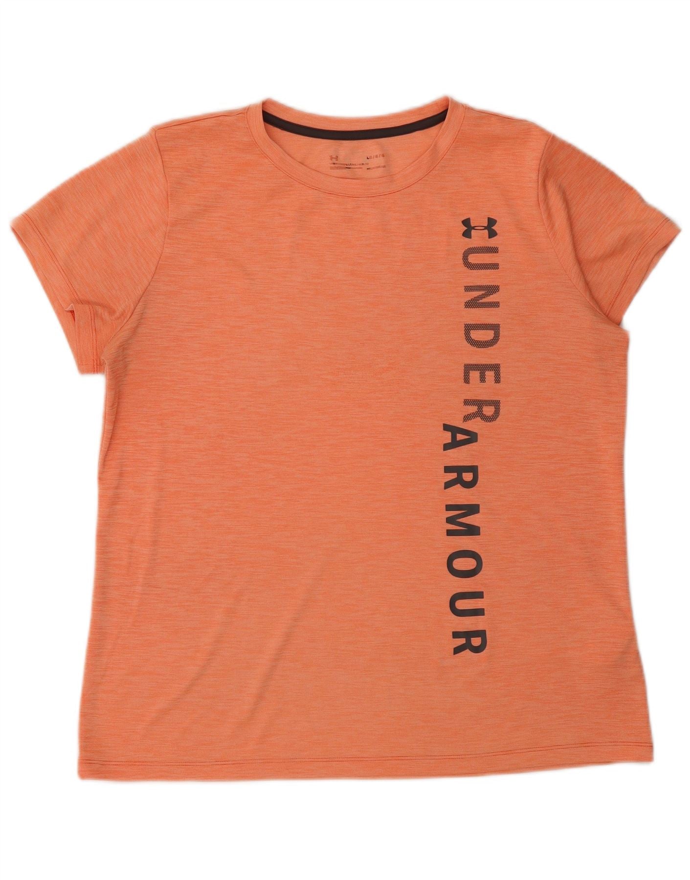 UNDER ARMOUR Mens Heat Gear Graphic T-Shirt Top Large Orange Polyester
