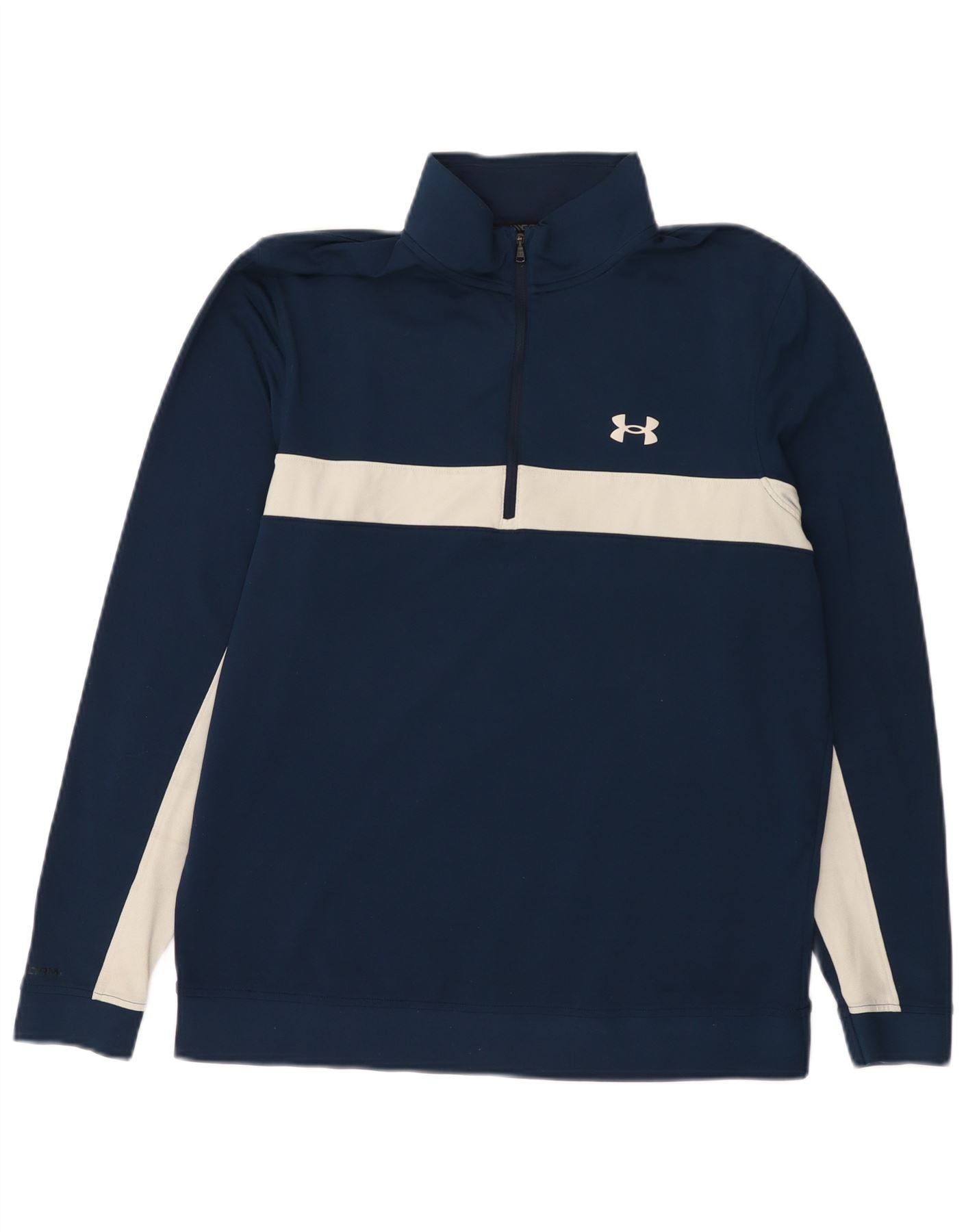 UNDER ARMOUR Mens Zip Neck Sweatshirt Jumper Medium Navy Blue Colourblock