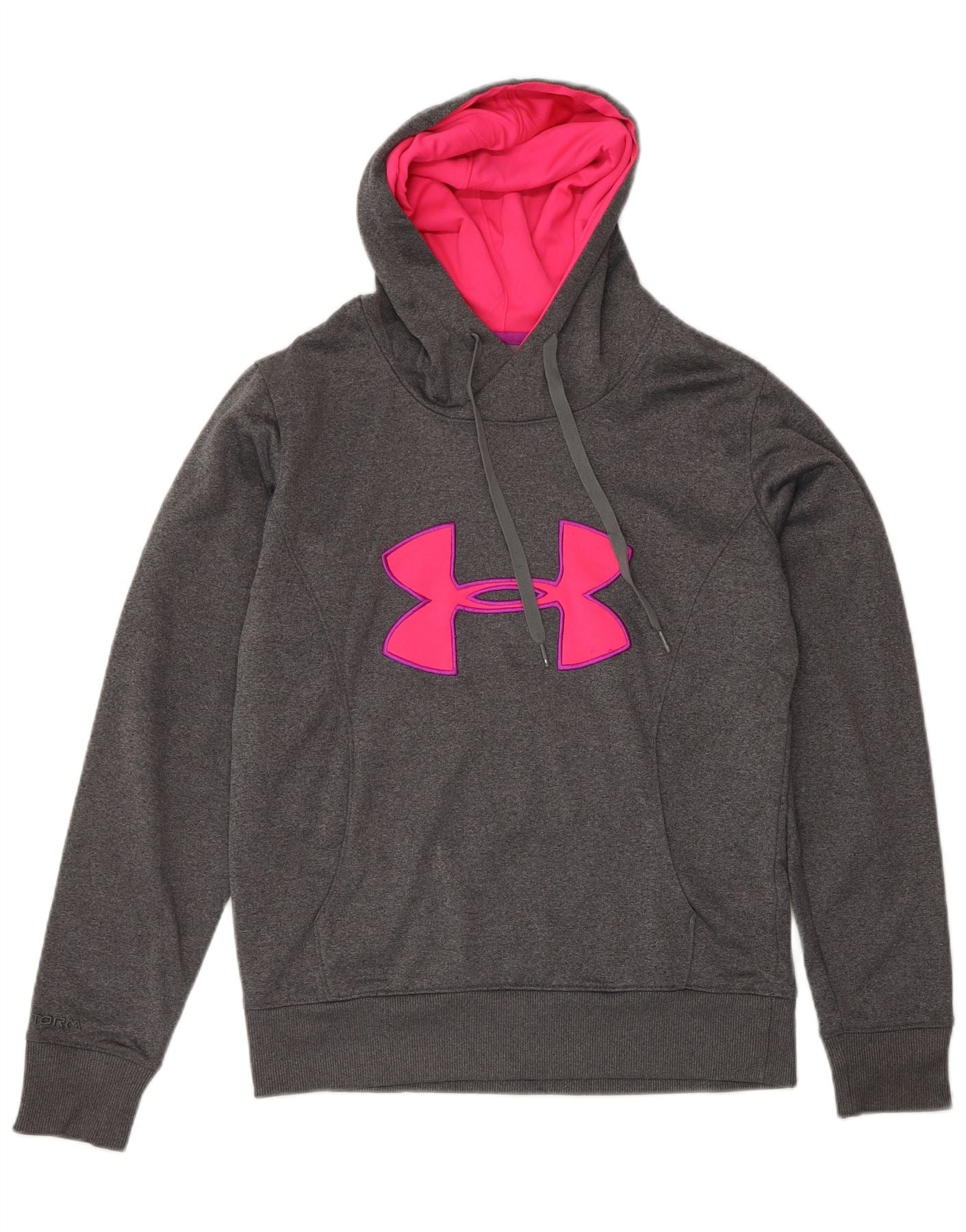 UNDER ARMOUR Womens Cold Gear Graphic Hoodie Jumper UK 10 Small Grey