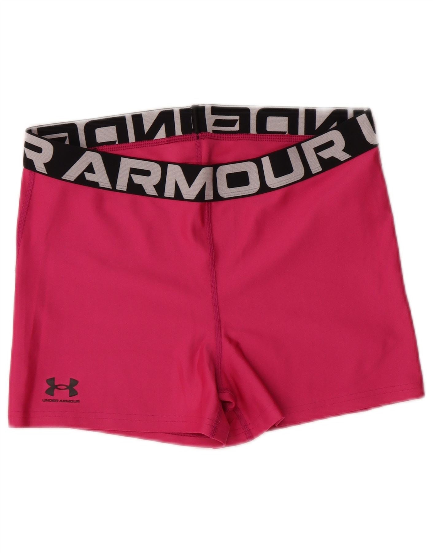 UNDER ARMOUR Womens Graphic Sport Shorts UK 14 Large Pink Colourblock