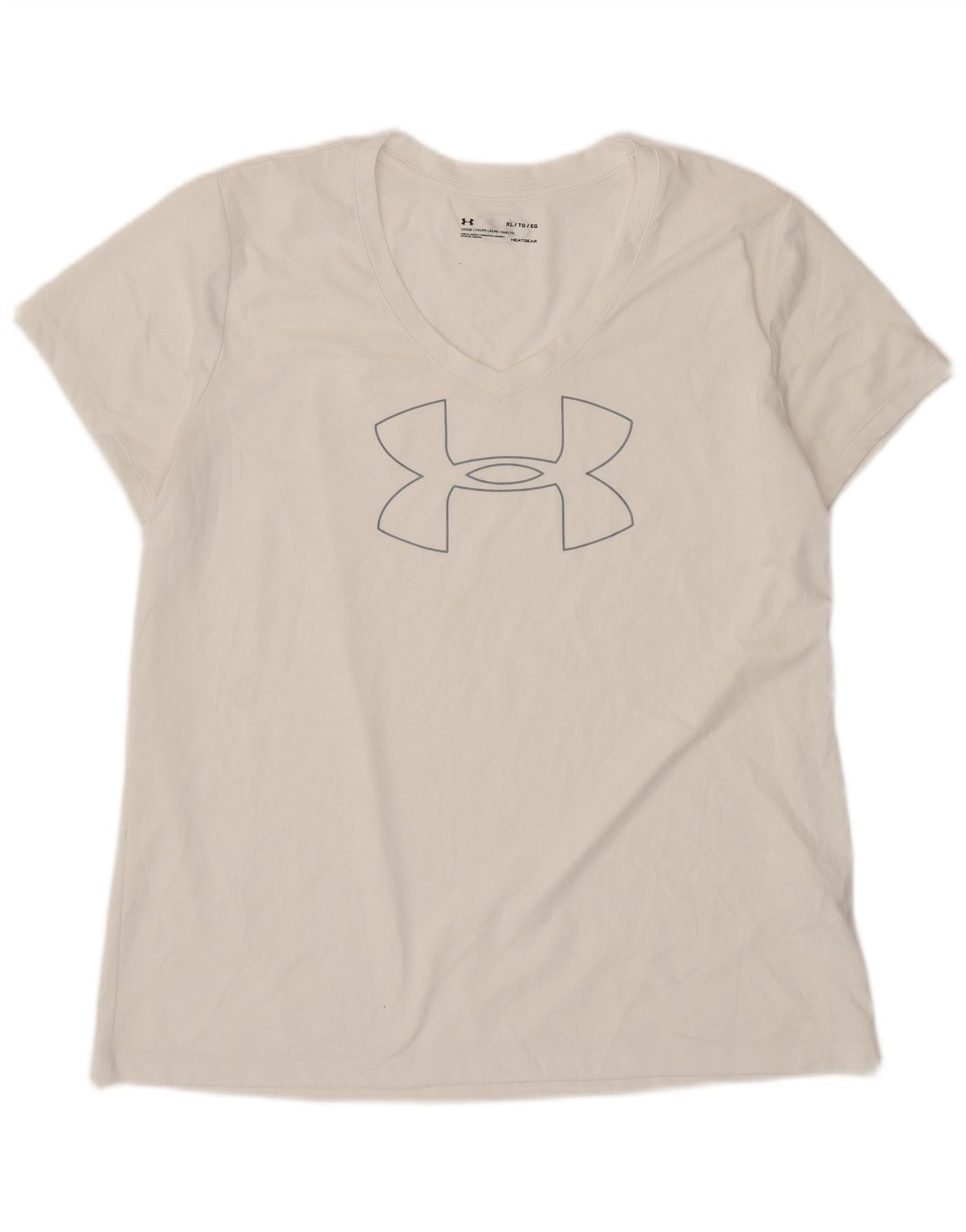 UNDER ARMOUR Womens Heat Gear Graphic T-Shirt Top UK 18 XL White Polyester