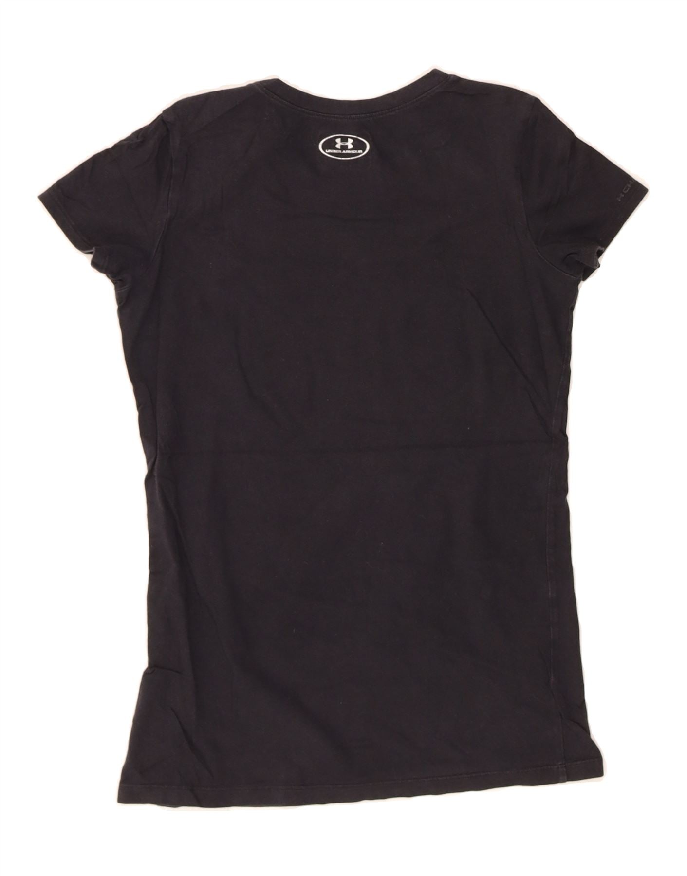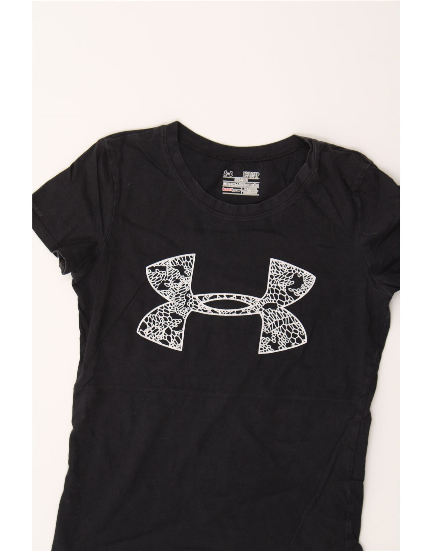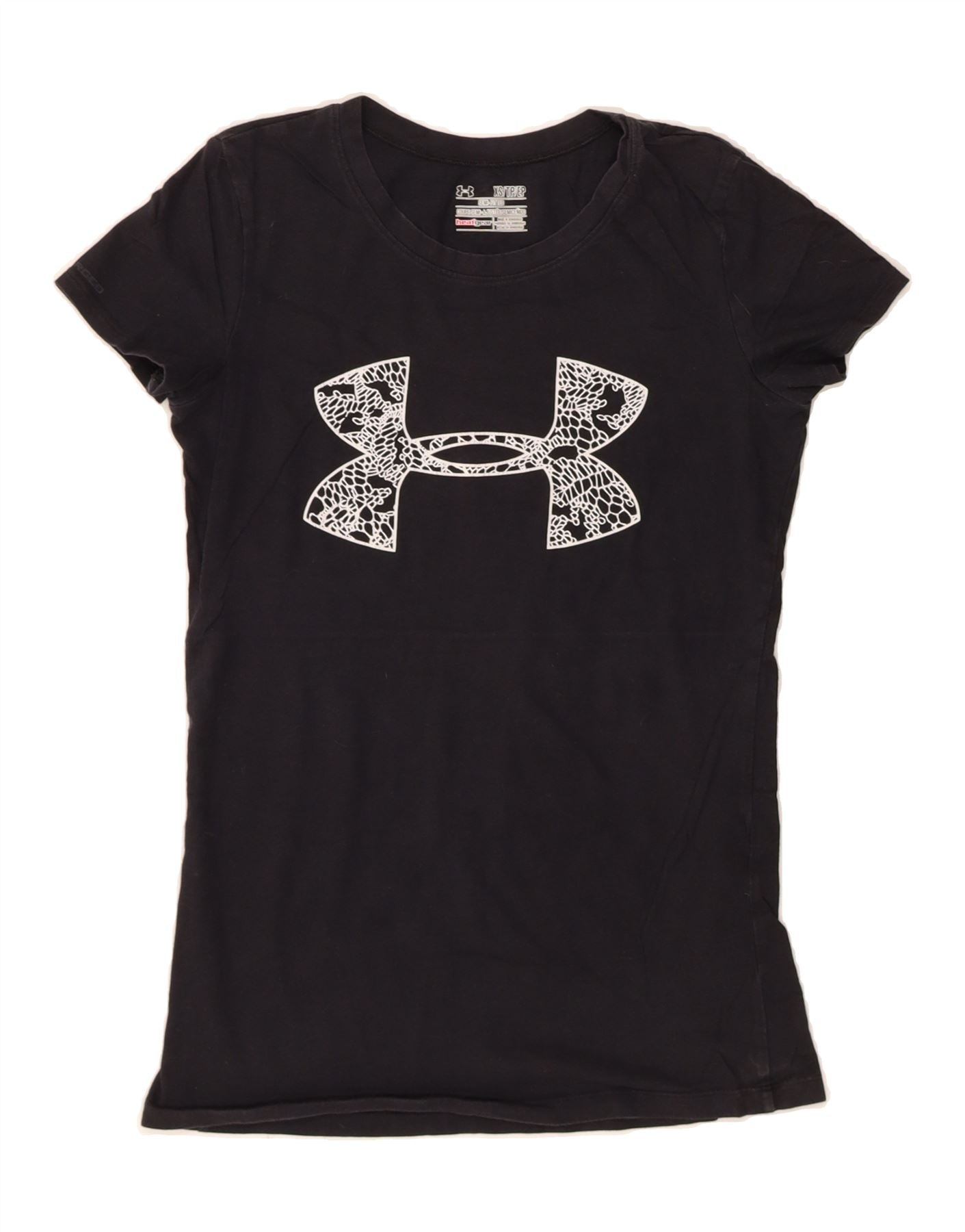 UNDER ARMOUR Womens Heat Gear Graphic T-Shirt Top UK 6 XS Black Cotton