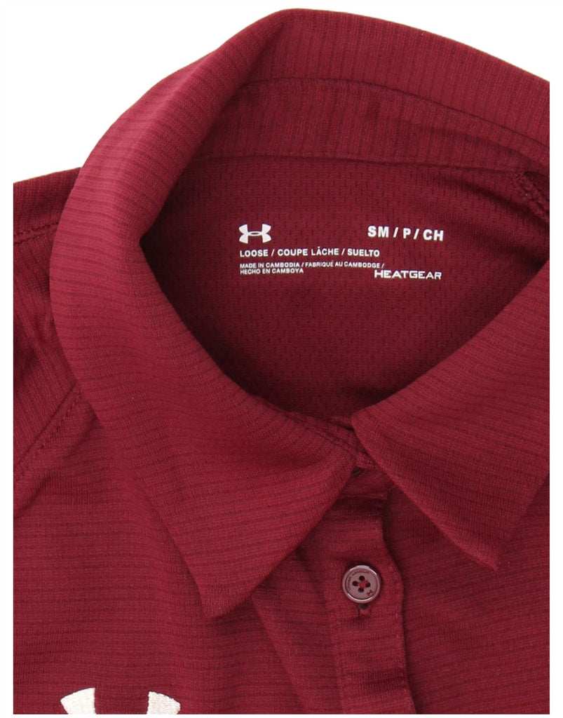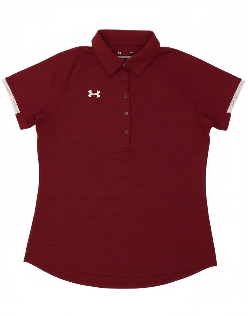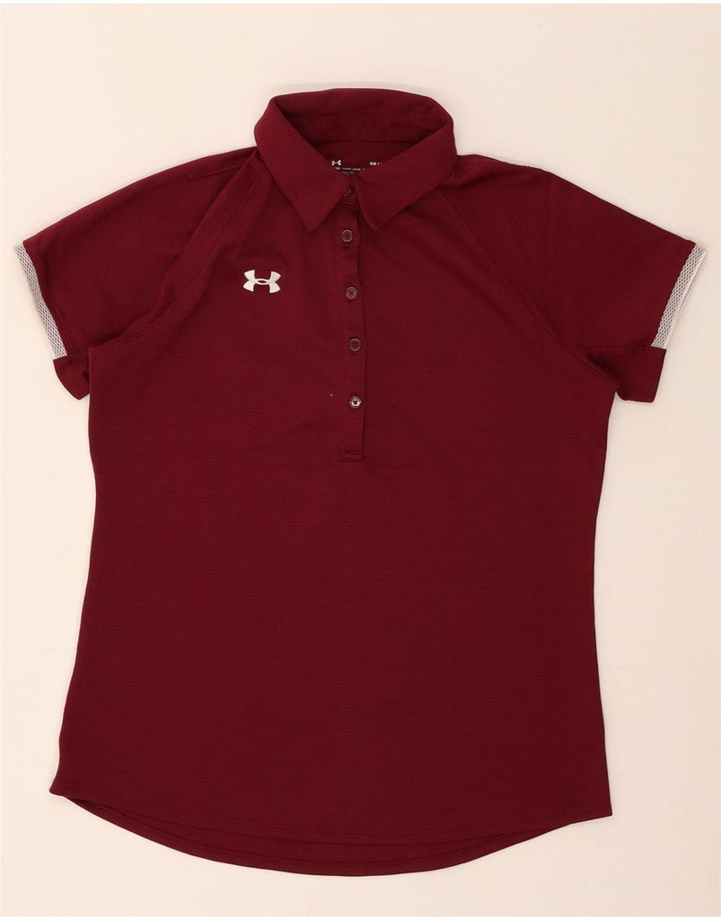 UNDER ARMOUR Womens Heat Gear Oversized Polo Shirt UK 10 Small Burgundy