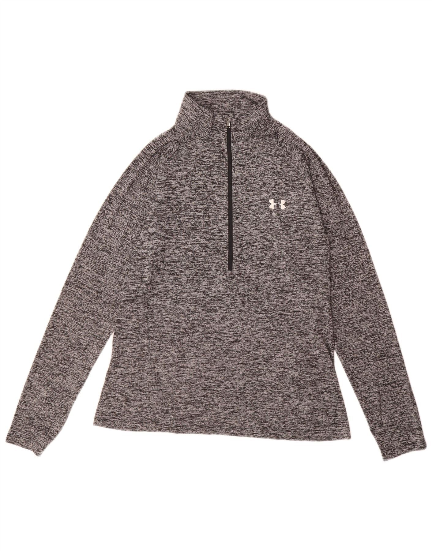 Under Armour Womens Heat Gear Top Long Sleeve UK 14 Large Grey Polyester