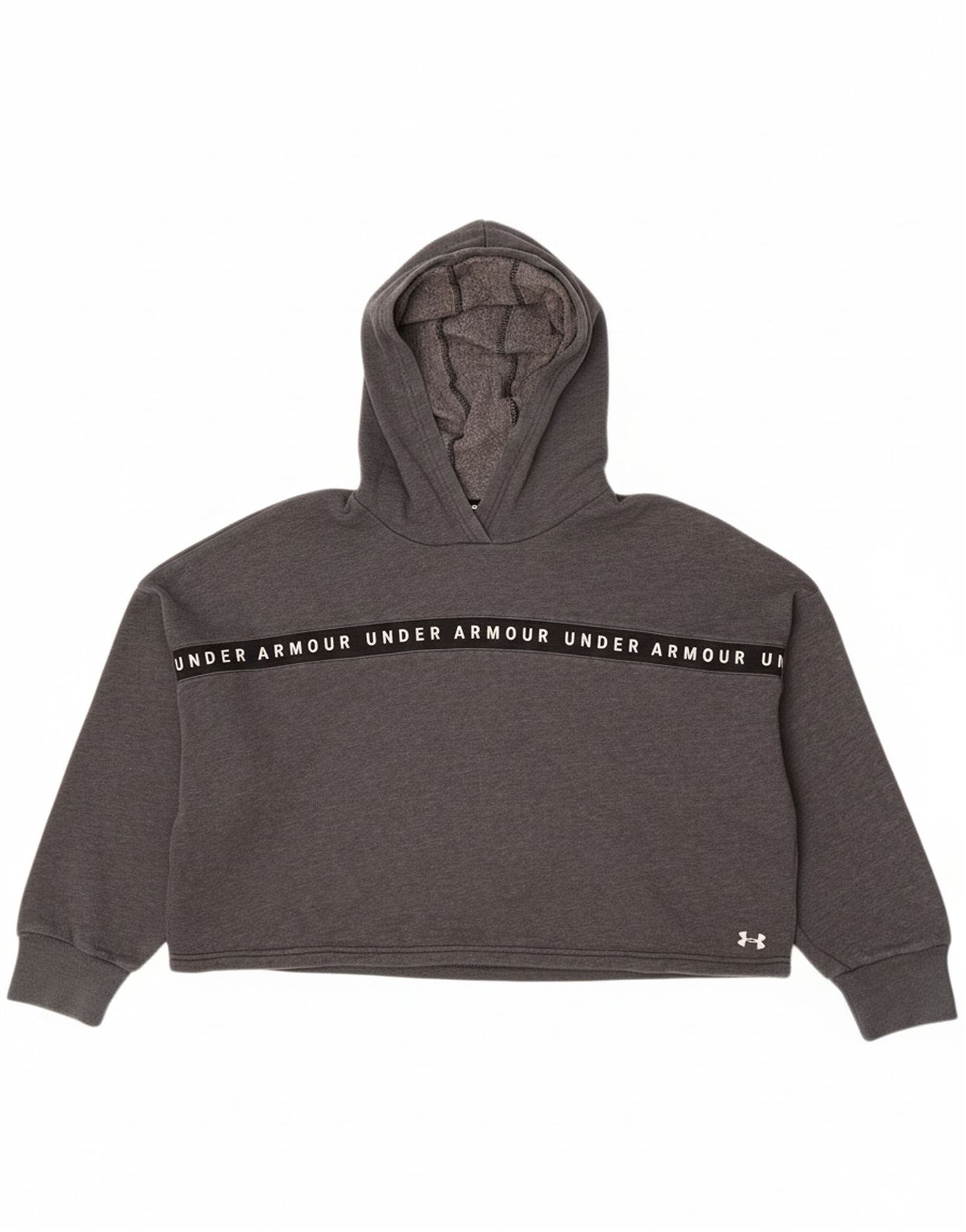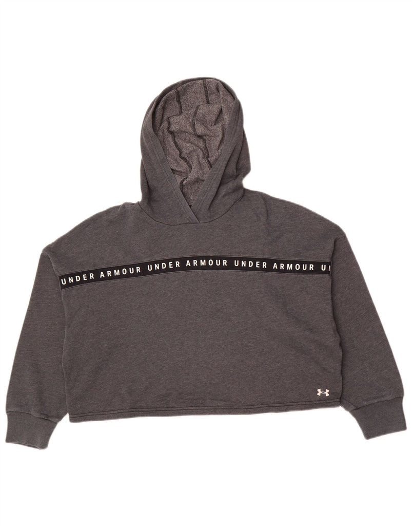 UNDER ARMOUR Womens Oversized Crop Graphic Hoodie Jumper UK 10 Small Grey