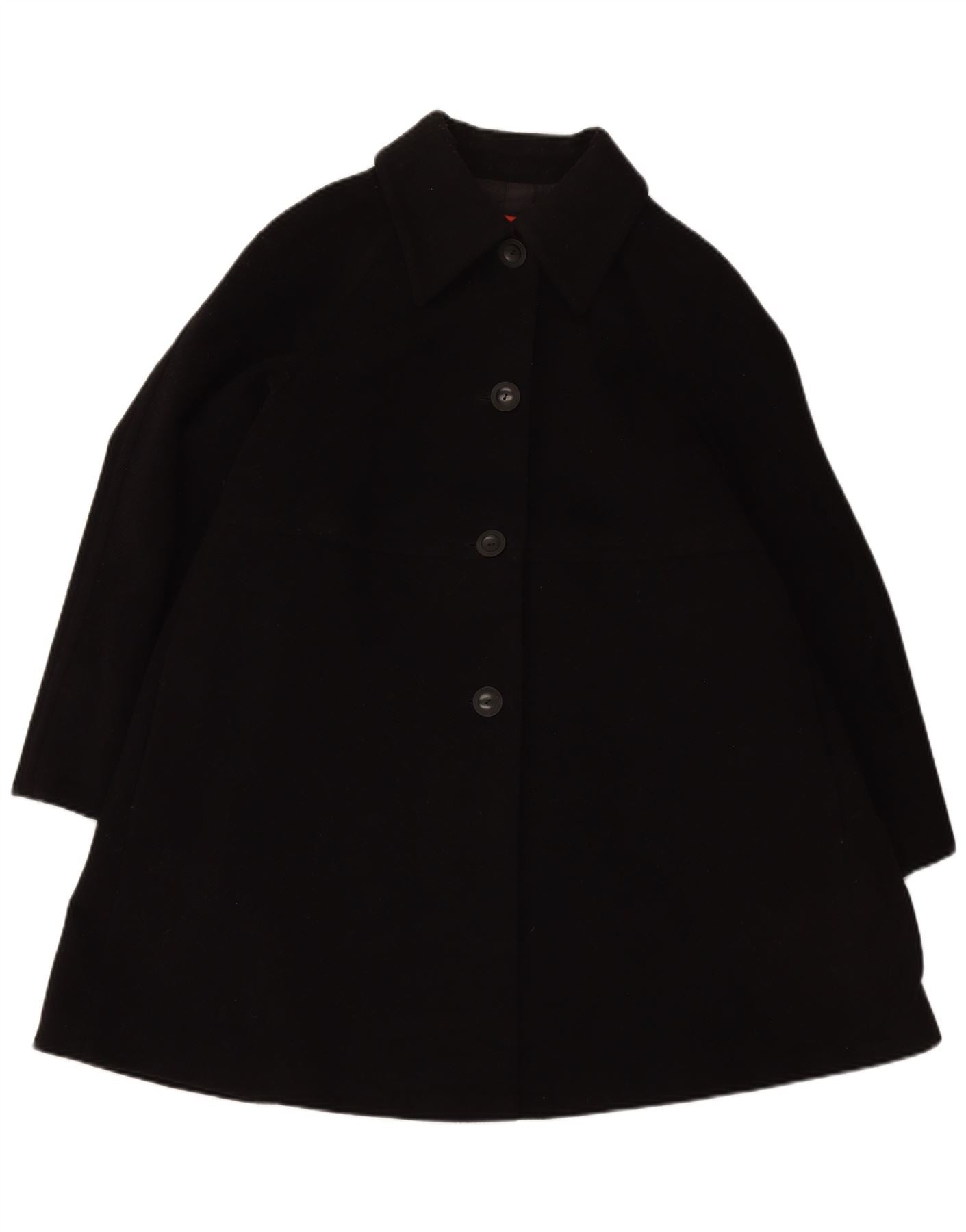 - AI Description: This Ungaro womens coat is crafted from a black woven fabric, offering a sophisticated texture. It features a classic collared neckline and elegant 3/4 length sleeves. The relaxed, loose fit ensures comfortable wear and a graceful drape. A three-button front closure provides a refined, classic detail, completing this timeless outerwear piece.