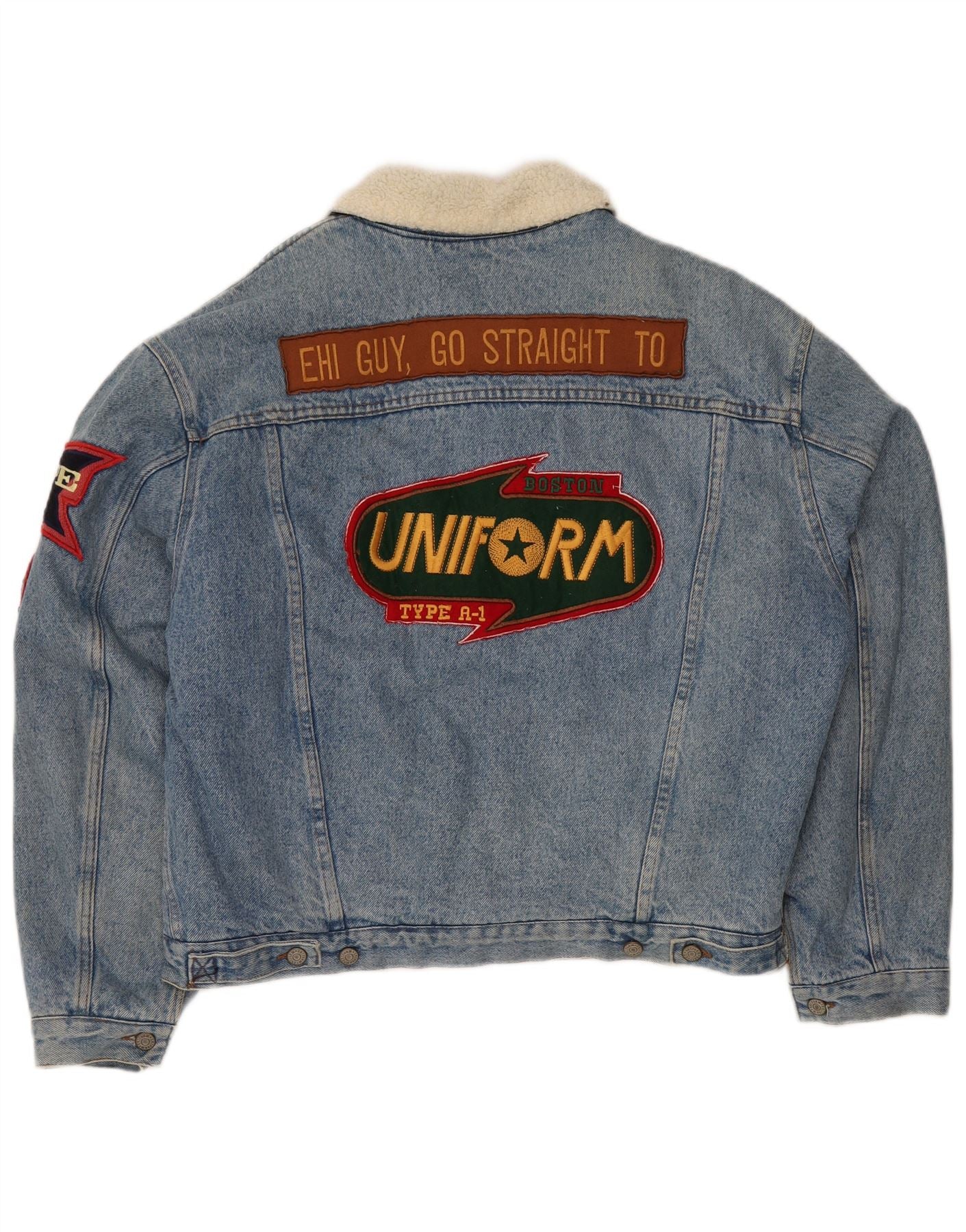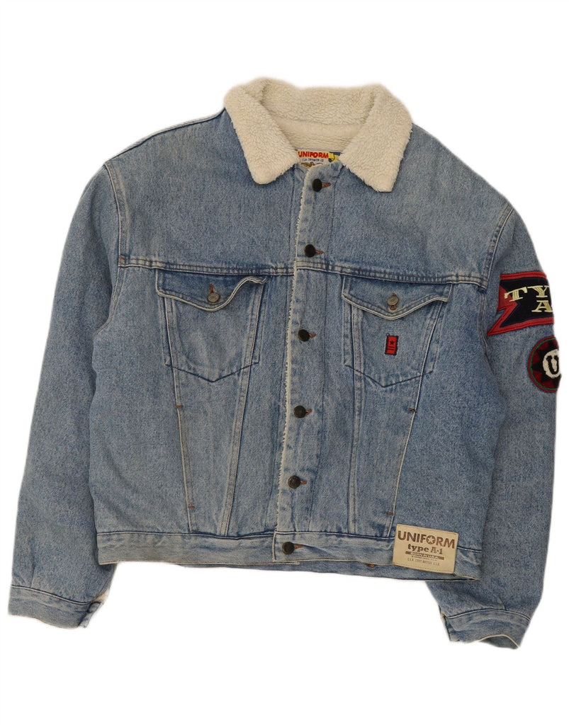UNIFORM Mens Uniform Type A-1 Graphic Denim Sherpa Jacket UK 40 Large Blue