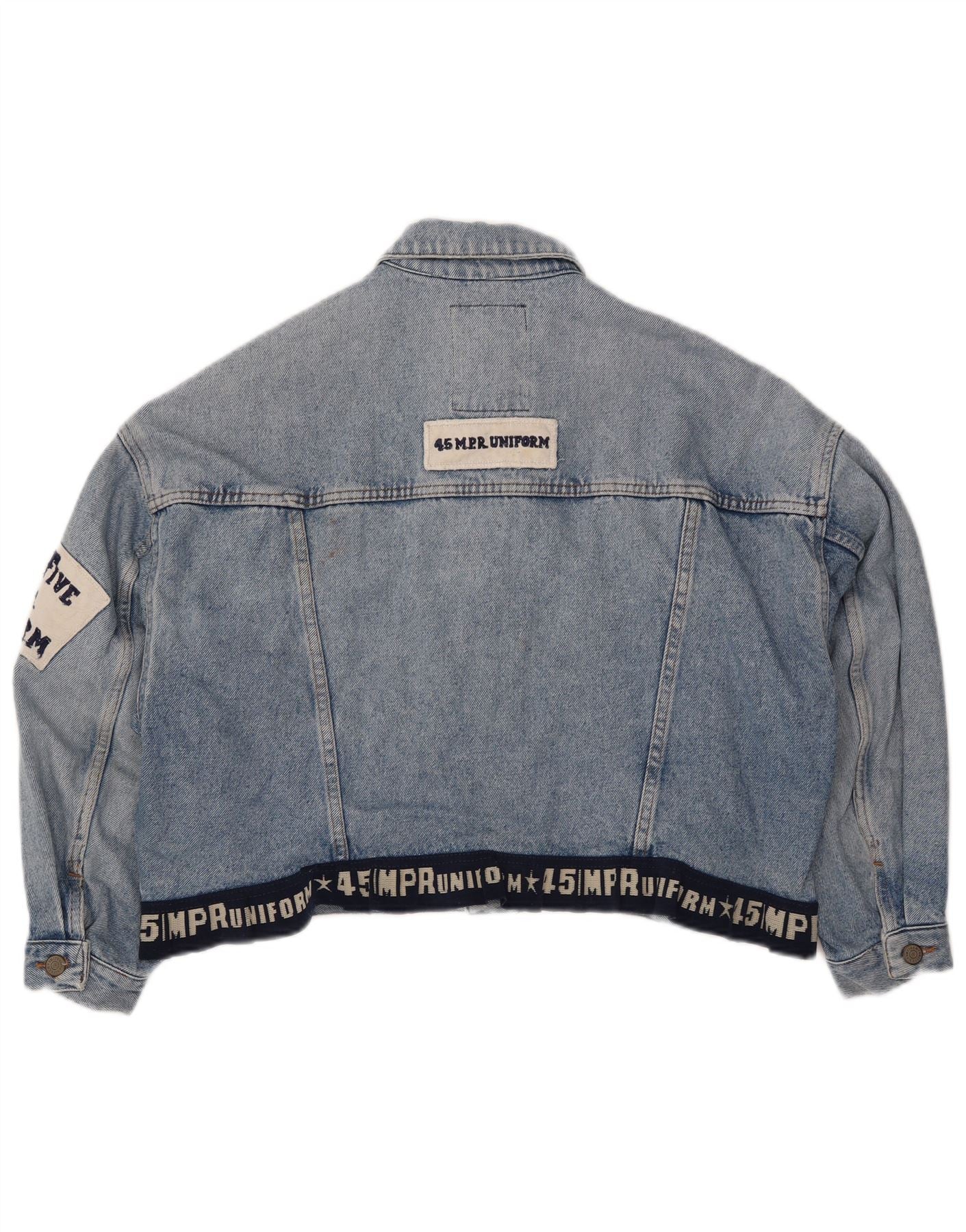 UNIFORM Womens Crop Graphic Denim Jacket UK 14 Large Blue