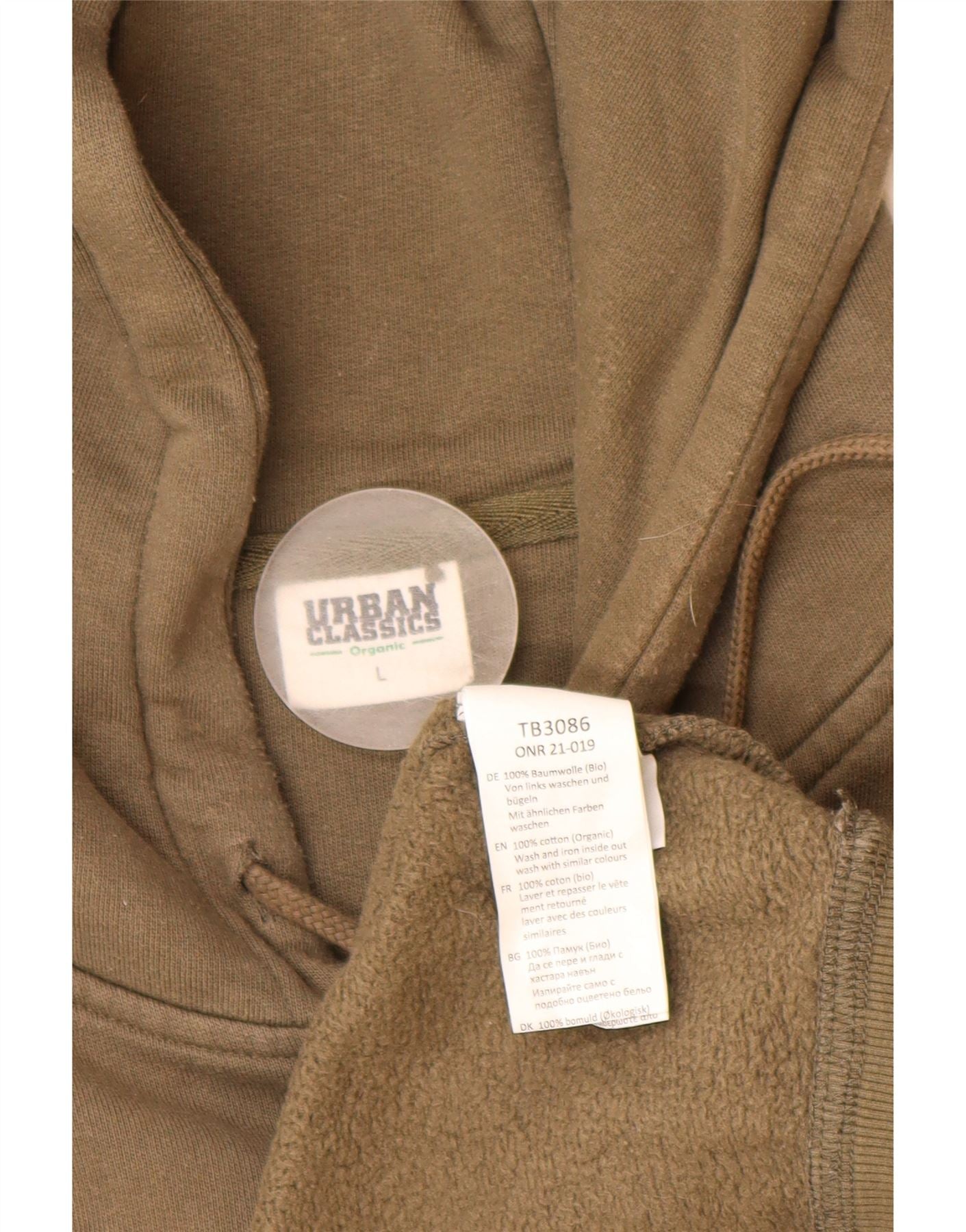 URBAN CLASSICS Mens Hoodie Jumper Large Khaki Cotton
