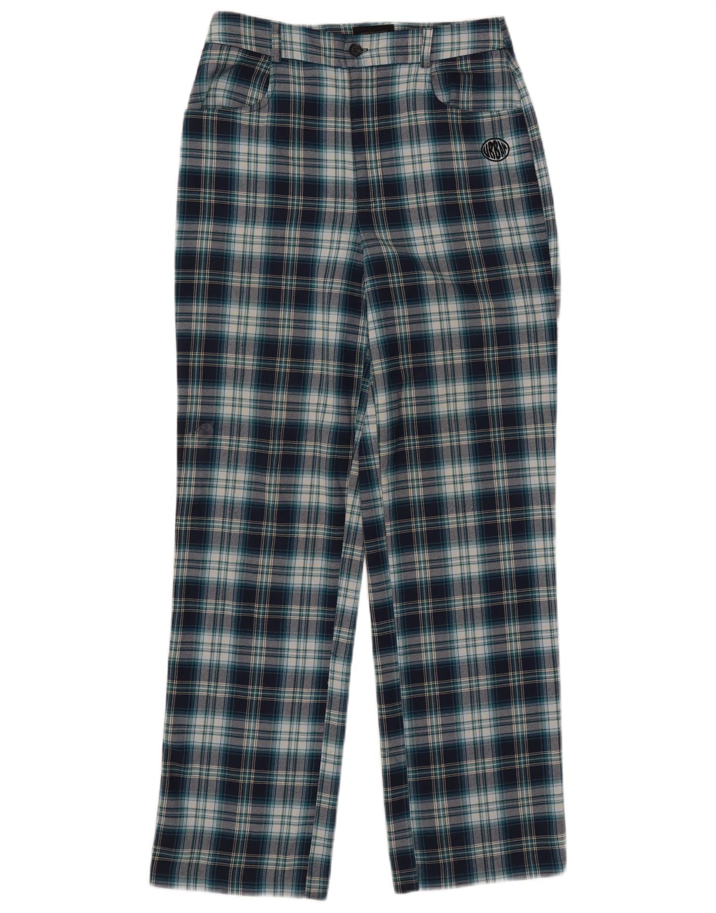URBAN OUTFITTERS Womens Straight Casual Trousers Small W28 L29 Blue Check