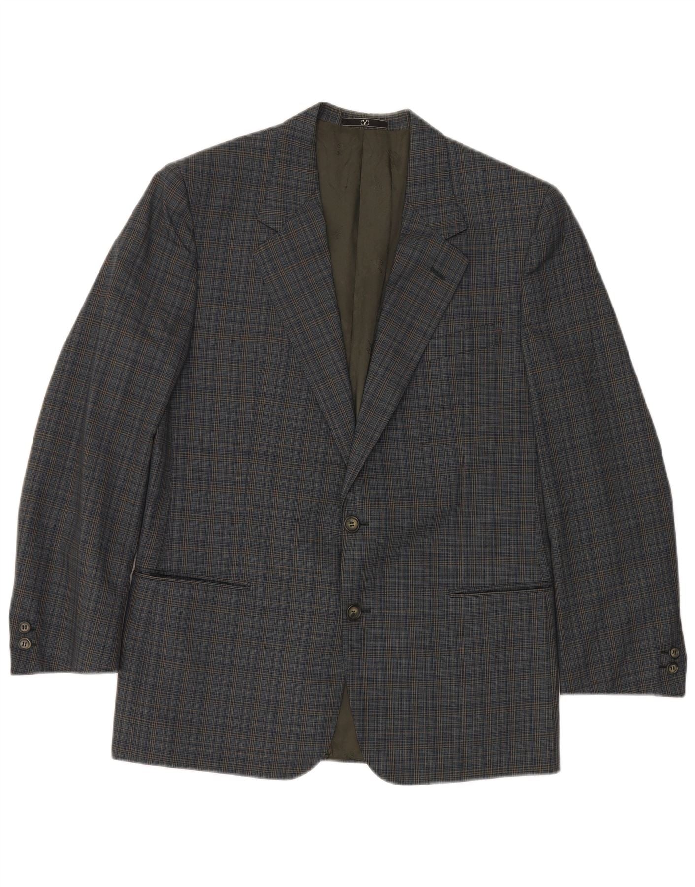 VALENTINO Mens 2 Button Blazer Jacket IT 50 Large Blue Check Viscose