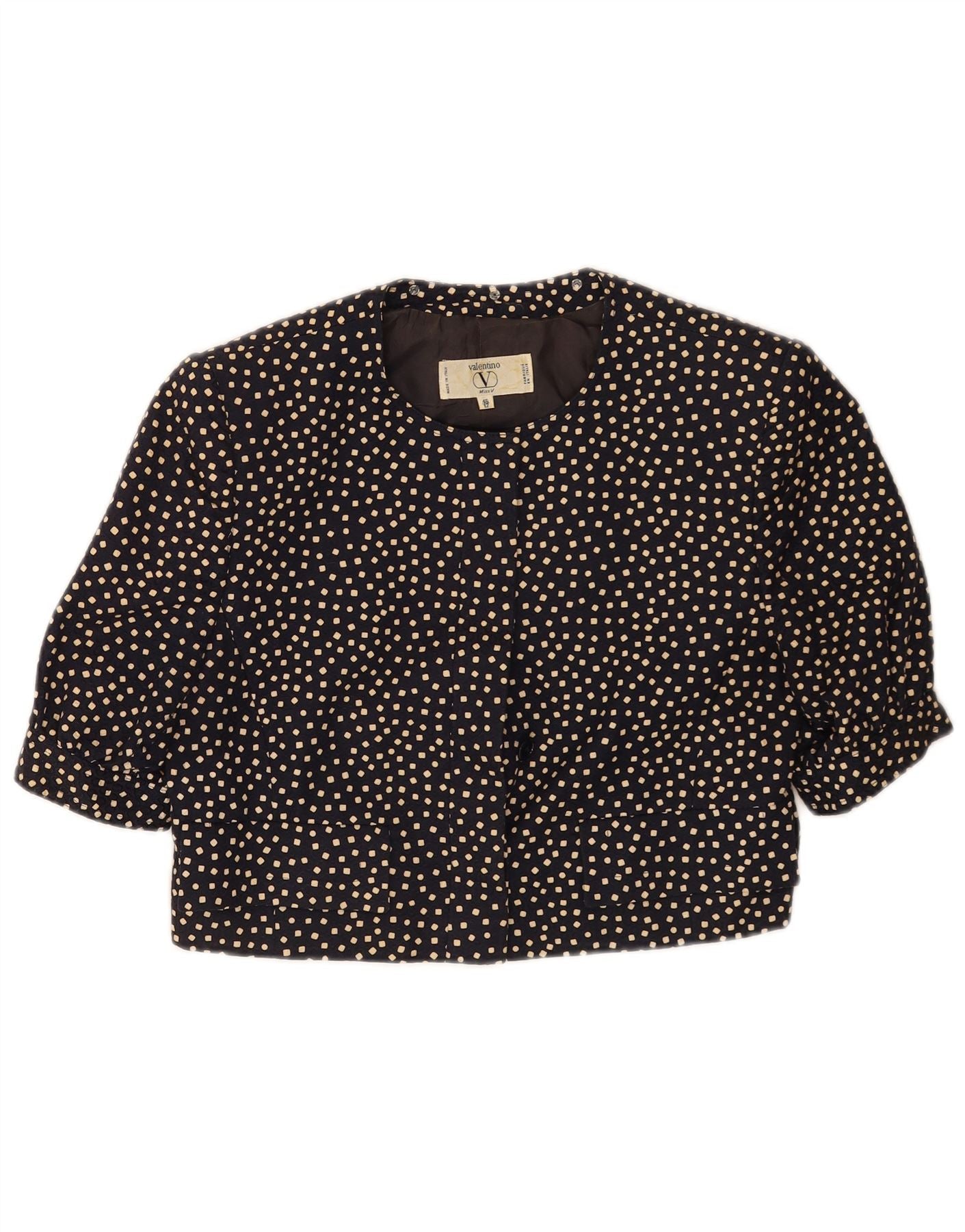 VALENTINO Womens 3/4 Sleeve Bolero Jacket UK 12 Medium Navy Blue Geometric