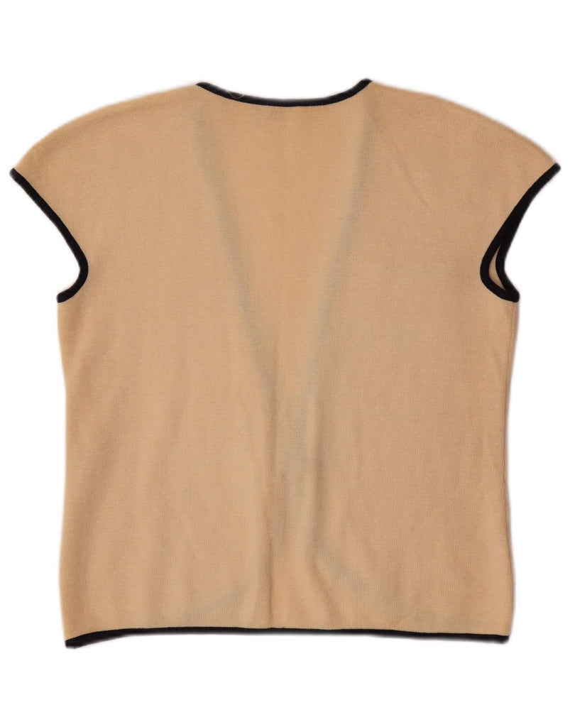 VALENTINO Womens Sleeveless Cardigan Sweater IT 44 Medium Beige Wool