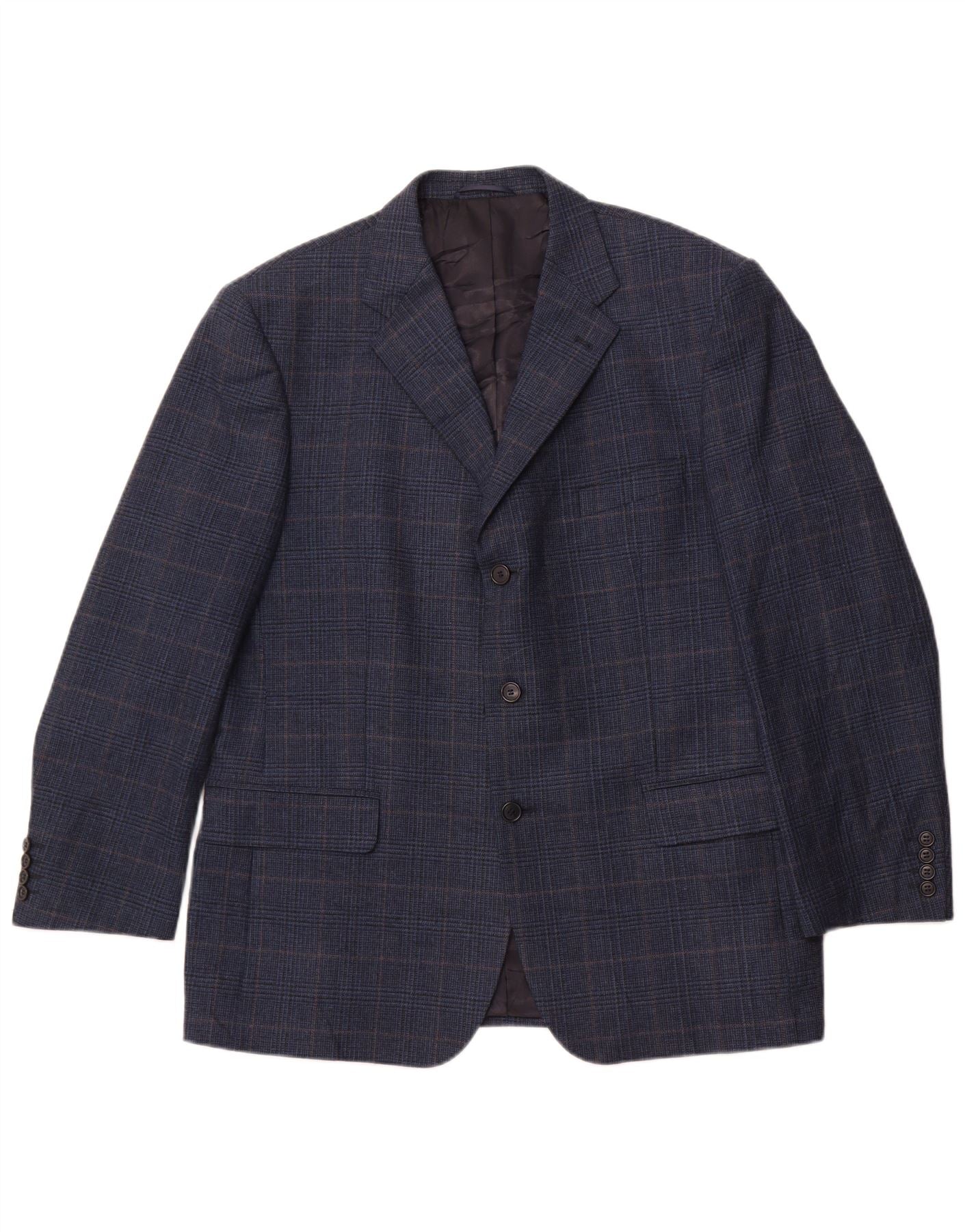 VALLE LESIA Mens 3 Button Blazer Jacket IT 54 2XL Navy Blue Houndstooth
