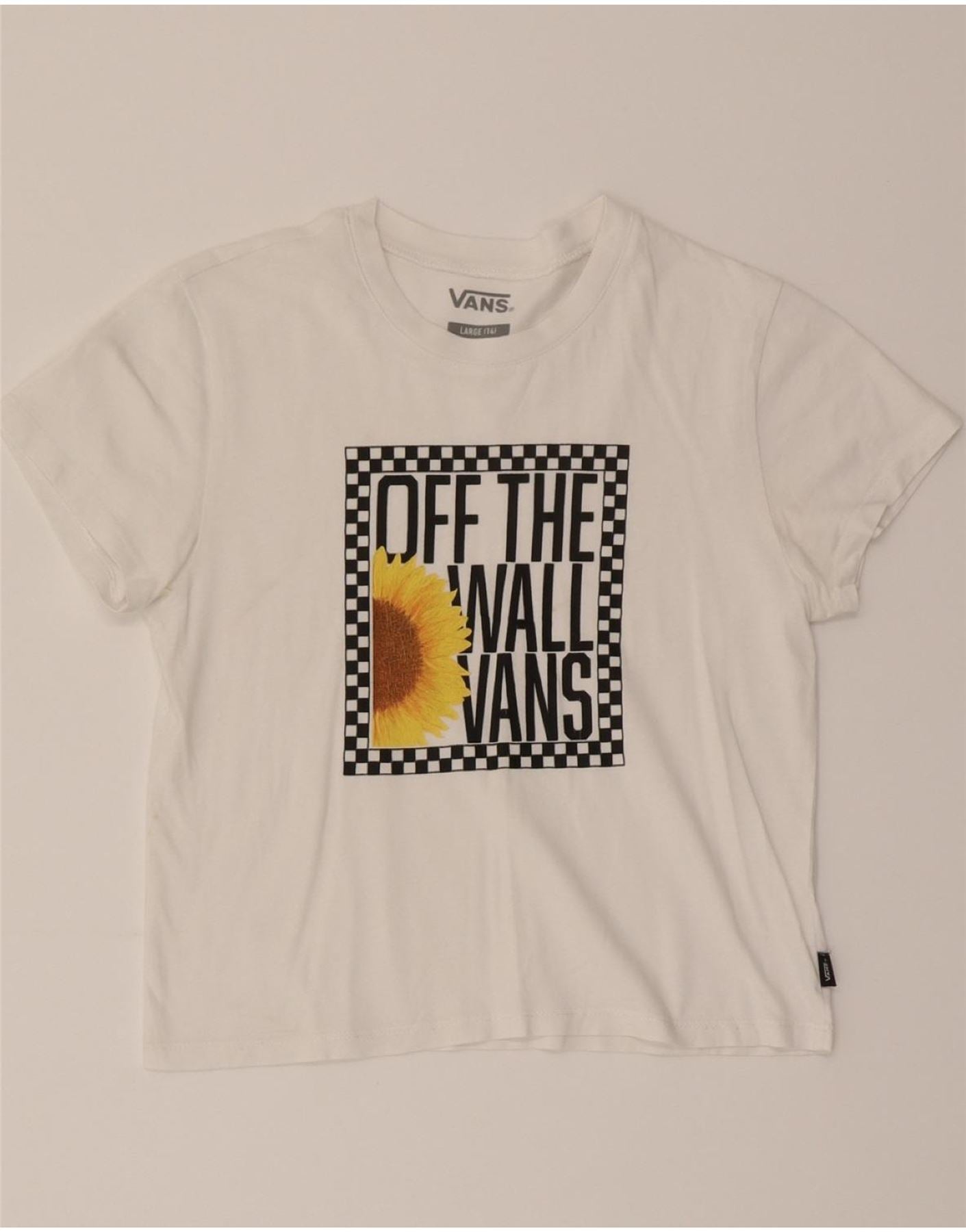 VANS Girls Crop Graphic T-Shirt Top 13-14 Years Large White Cotton