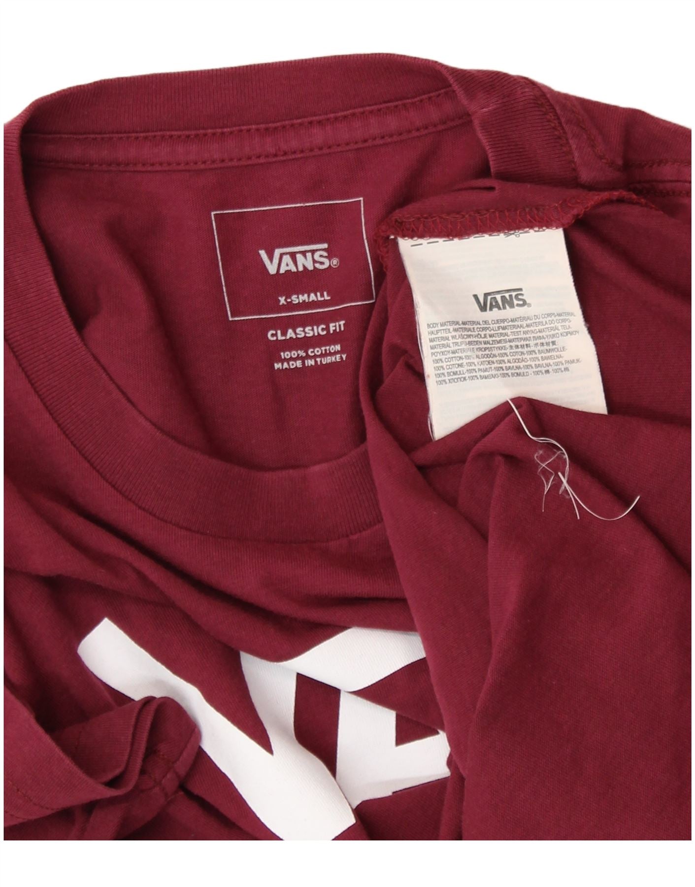 VANS Womens Classic Fit Graphic T-Shirt Top UK 6 XS Burgundy Cotton
