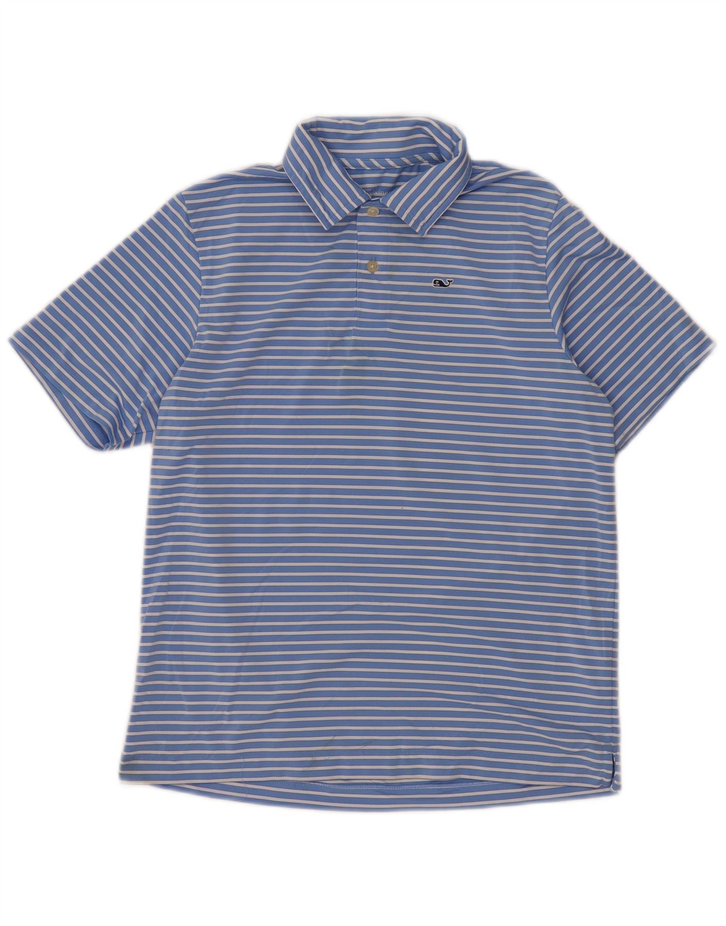 VINEYARD VINES Boys Polo Shirt 15-16 Years Large Blue Striped Polyester